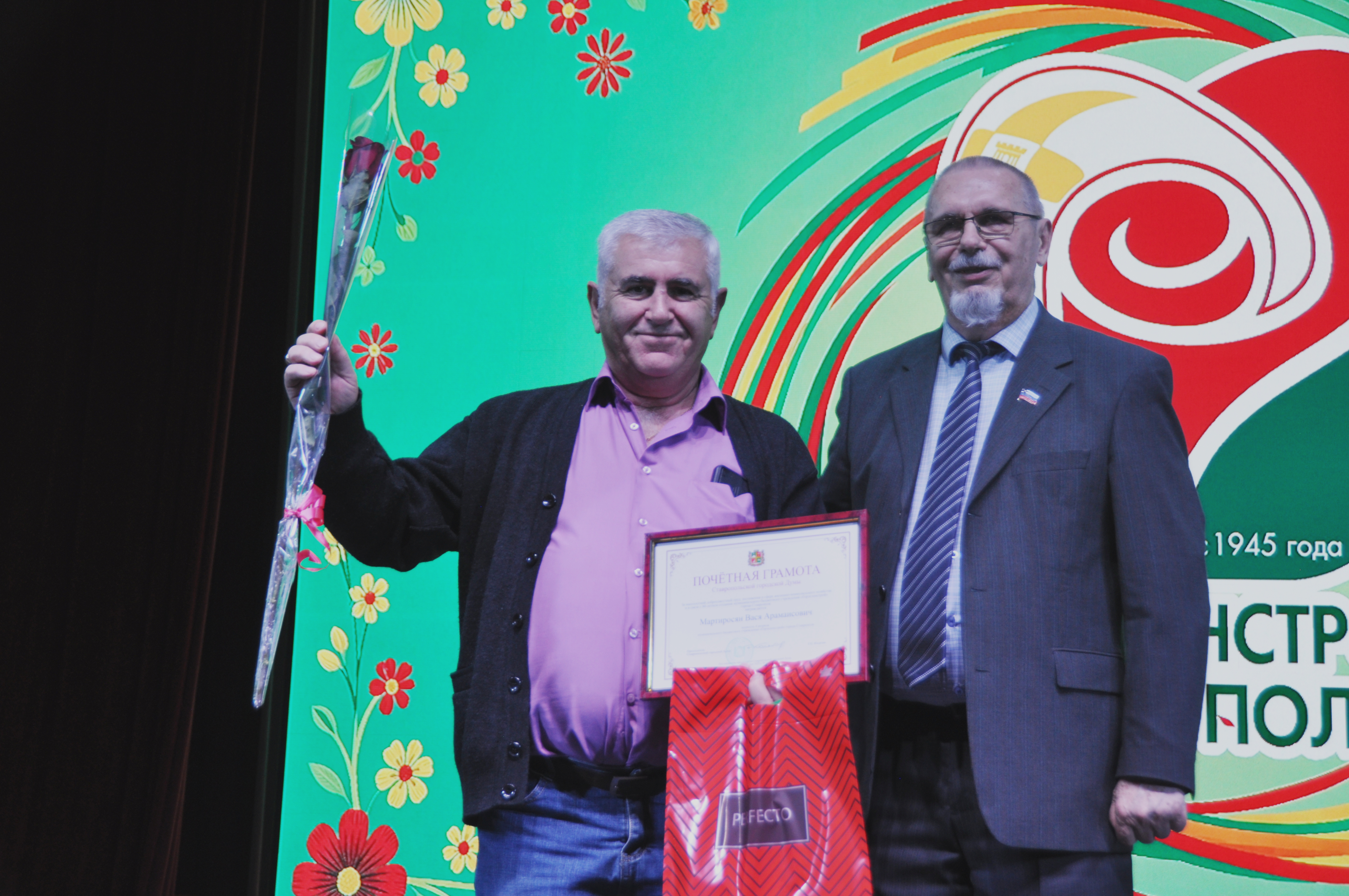 Торжественное мероприятие прошло в актовом зале Института дружбы народов Кавказа. Поздравить юбиляров собрались многочисленные гости: глава города Иван Ульянченко, председатель городской Думы Георгий Колягин и депутаты, заместитель руководителя аппарата Правительства края Любовь Маковская, первый заместитель председателя краевой Думы Виктор Гончаров, председатель комитета Думы края по социальной политике и здравоохранению Валентина Муравьева, депутат краевого парламента Марина Костровская, свое видеопоздравление прислала заместитель руководителя фракции «Единая Россия» в Государственной Думе депутат от Ставропольского края Ольга Тимофеева. Особыми гостями стали ветераны предприятия – его руководители и инженеры, чьими руками создавалась эта красота.