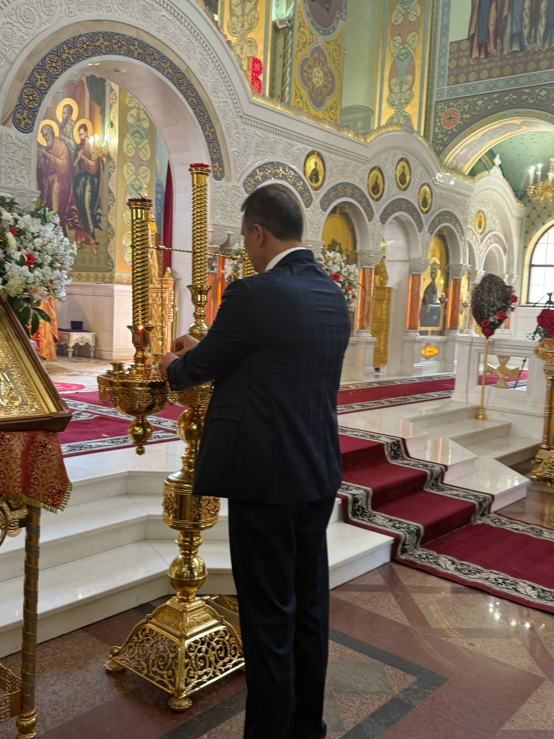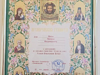 После богослужения и крестного хода вокруг храма состоялась церемония награждения, в ходе которой владыка Кирилл вручил первому заместителю председателя Ставропольской городской Думы Евгению Пятак архиерейскую грамоту «За усердные и ревностные труды во славу Русской Православной Церкви».