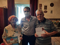 Народные избранники привезли ставропольским ветеранам красивые тематические открытки, а также эксклюзивные значки, выполненные к памятной дате фирмой «Сан-Сан».