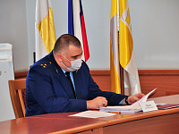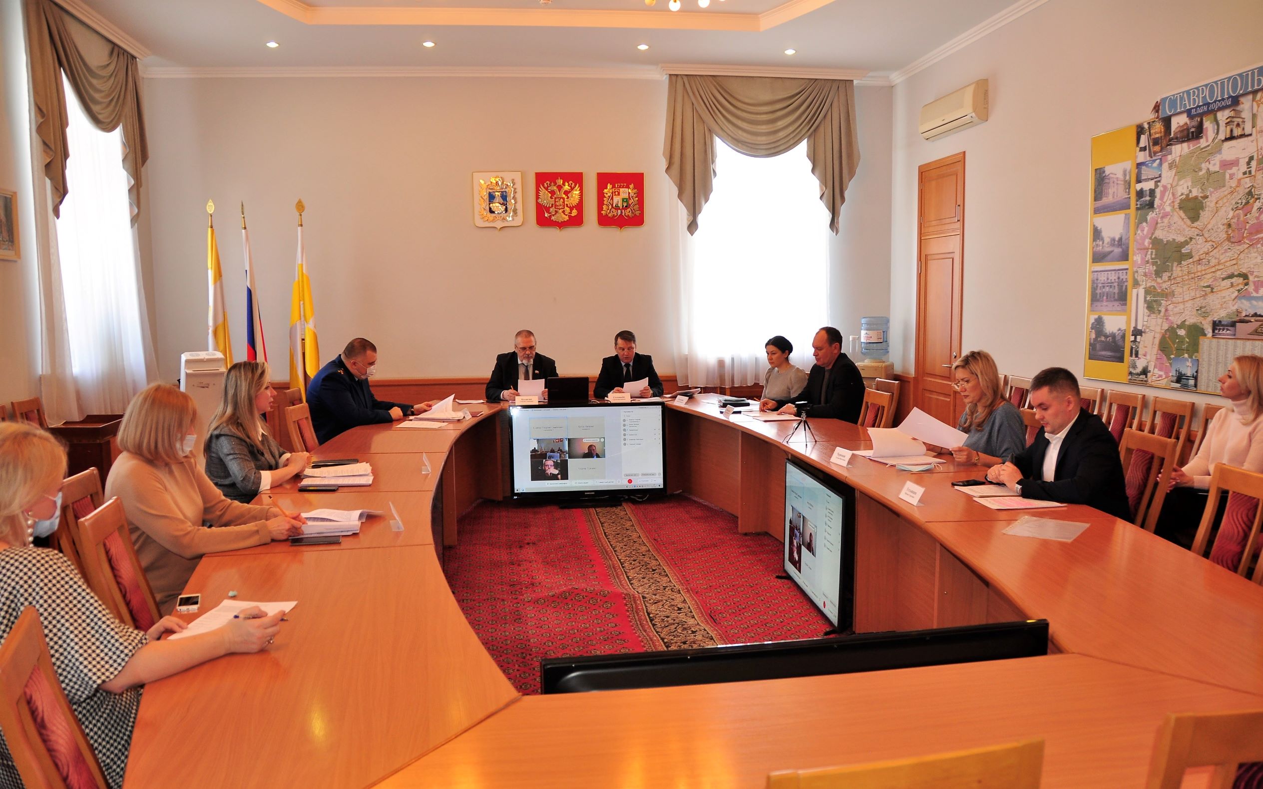 Сергей Соловьев провел заседание комитета по законности и местному самоуправлению с участием председателя городской Думы Георгия Колягина, руководителя городской контрольно-счетной палаты Марины Колесовой, зампрокурора города Ставрополя Вадима Орлова. Заседание прошло в очно-дистанционном формате: некоторые депутаты участвовали в обсуждении повестки с помощью онлайн-платформ.