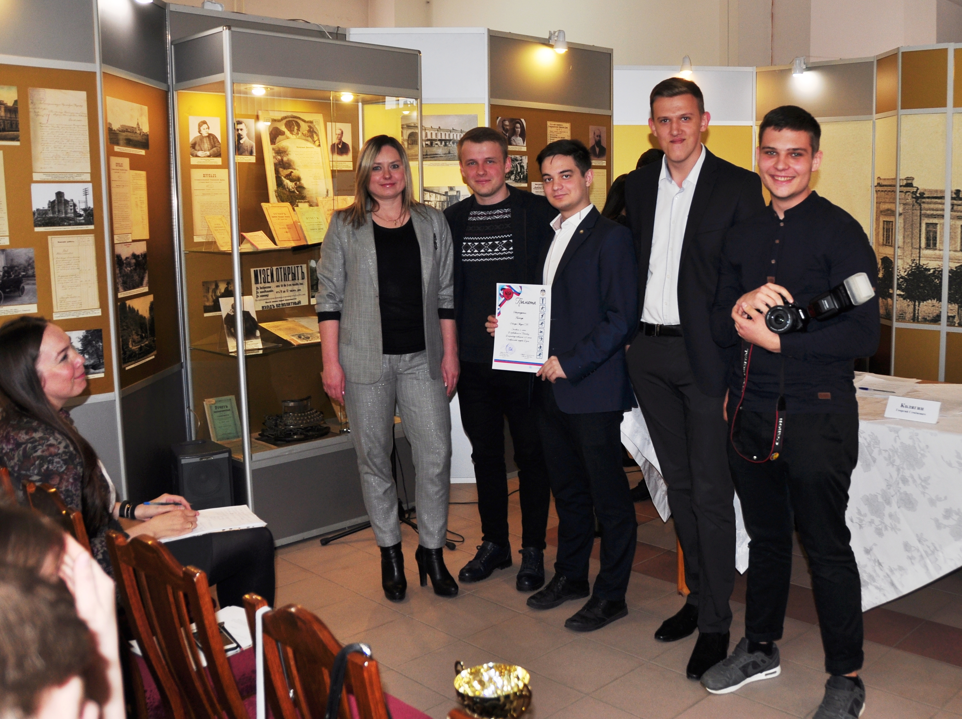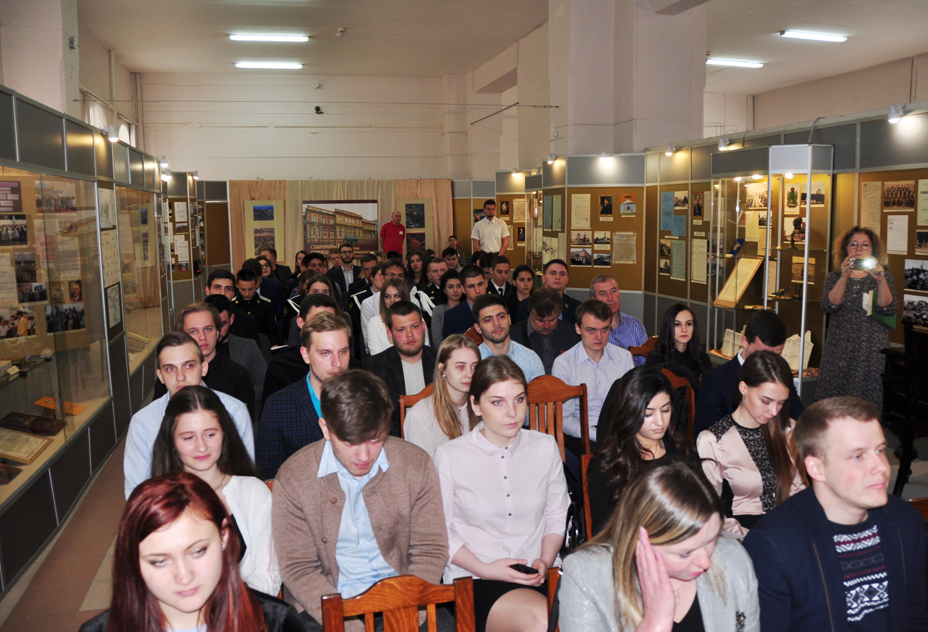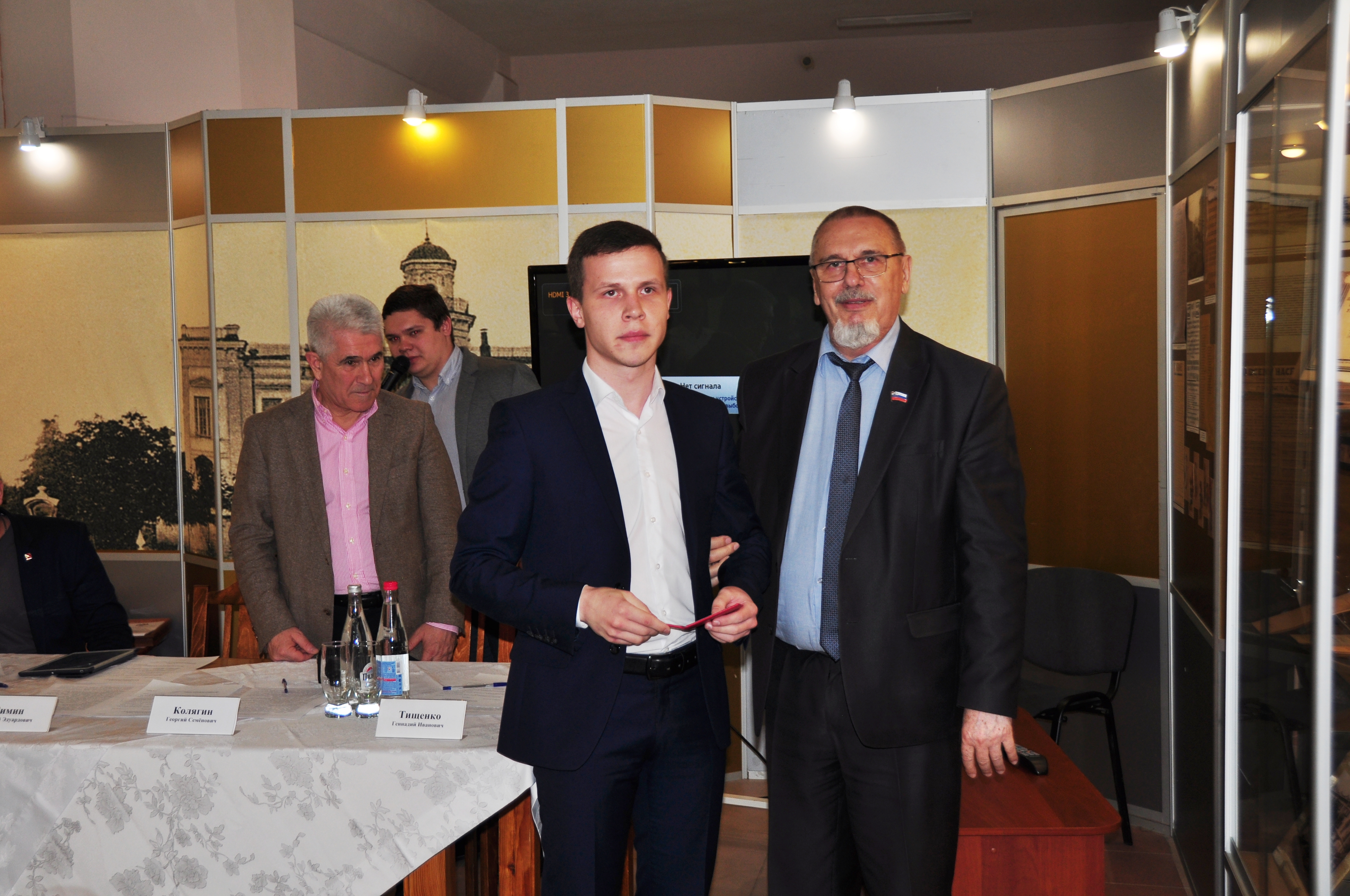 Вслед за депутатами выставку посетили их младшие коллеги – члены Молодёжной палаты при Ставропольской городской Думе. В стенах музея, пропитанных историей представительного органа, состоялось торжественное заседание палаты. В её ряды были приняты новые члены, удостоверения которым вручил сам спикер «большой» Думы Георгий Колягин, после чего председатель молодёжного парламента отчитался о деятельности палаты за 2018 год. Как оказалось, юные ставропольцы весьма активны: регулярно организуют патриотические, спортивные и экологические акции. Не обошлось без награждений, палата провела массу мероприятий, приуроченных к 25-летию Думы. Юные горожане состязались в уме, смекалке и силе. Грамоты и кубки получали за призовые места в турнирах по шахматам, рукопашному бою, пейнтболу, бильярду и интеллектуальной викторине. От старших коллег прозвучали поздравления и напутствия, общий посыл которых сводился к известному тезису: «Молодые, за вами будущее! Учитесь, дерзайте, реализуйте себя!» Ведь пройдёт совсем немного времени по историческим меркам и нынешние юноши войдут в число «отцов города», напишут новые страницы его летописи и станут новыми героями музейной экспозиции.
