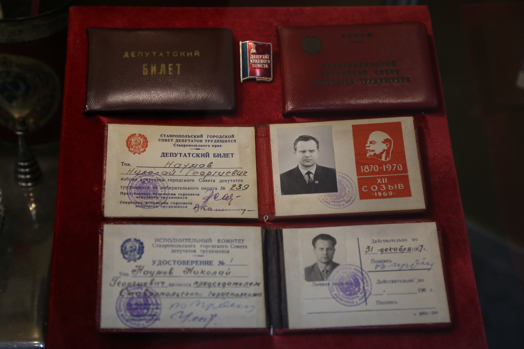Экспозиция удивительна. От стенда к стенду движется эпоха, меняются события, законы, имена. Здесь можно увидеть современные решения Думы и их исторические прототипы – рукописные рапорты городского магистрата, предметы быта, соответствующие описываемому времени: сначала чернильница и пресс-папье, потом печатная машинка. И фотографии…хрустальное напоминание о навсегда ушедшем мгновении.