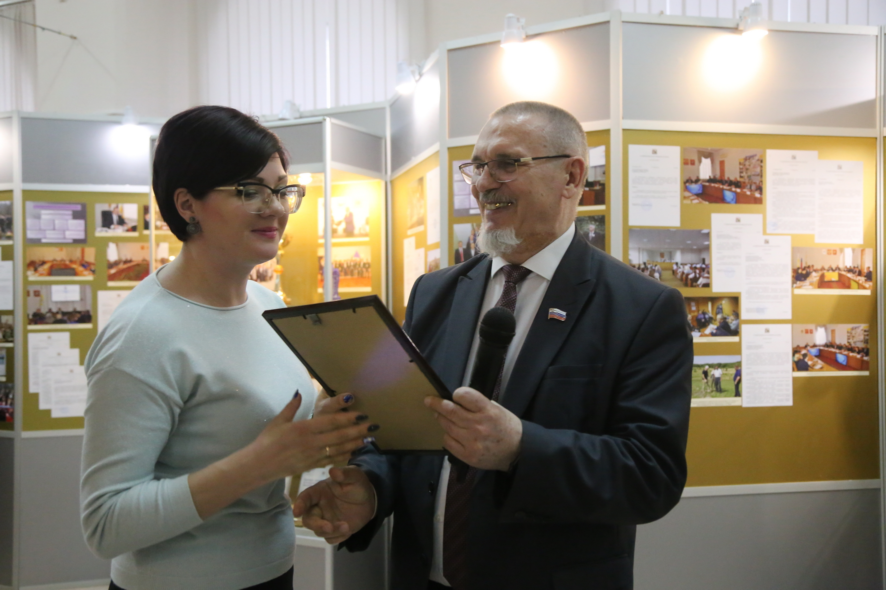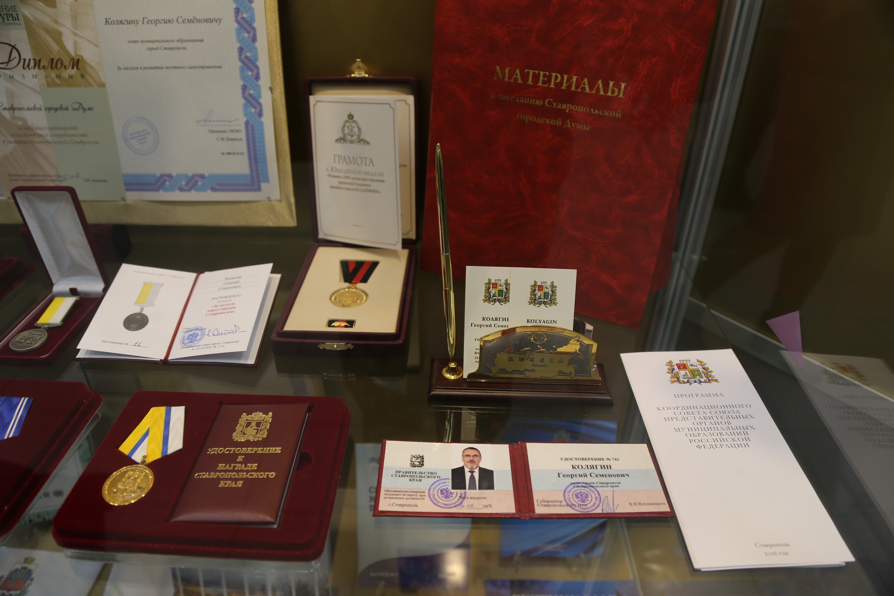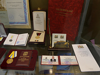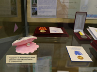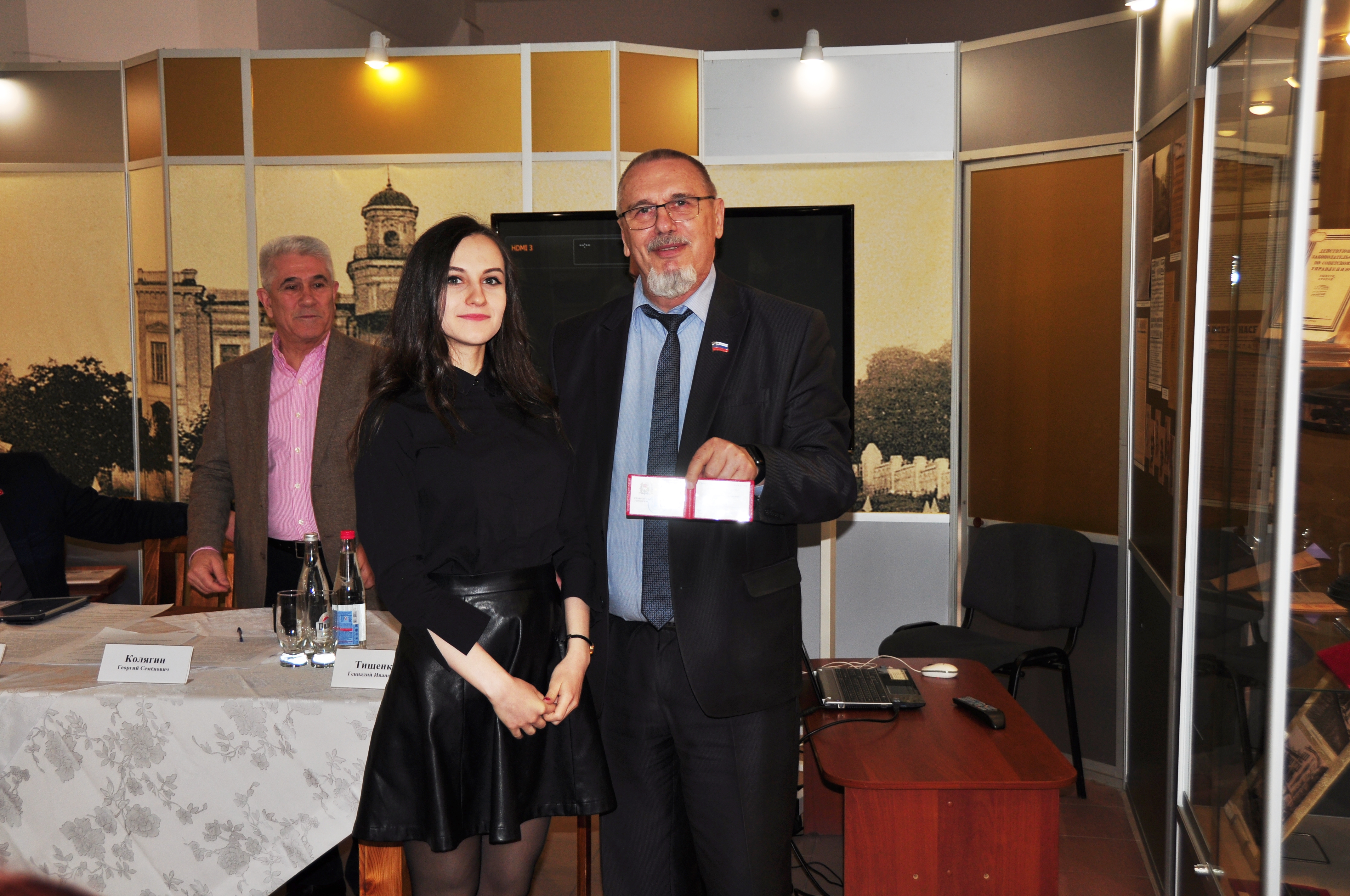 Георгий Колягин поблагодарил Николая Охонько и в его лице весь коллектив музея за организацию выставки, вручив заслуженному работнику культуры юбилейный нагрудный знак «25 лет Ставропольской городской Думе». Наградами также были отмечены сотрудники музея, оказавшие неоценимую помощь в подготовке юбилейных мероприятий и создании книги о Думе: заведующий отделом этнографии Андрей Гордиенко, заведующий отделом истории Мария Гордылева, старший научный сотрудник Татьяна Джонс.