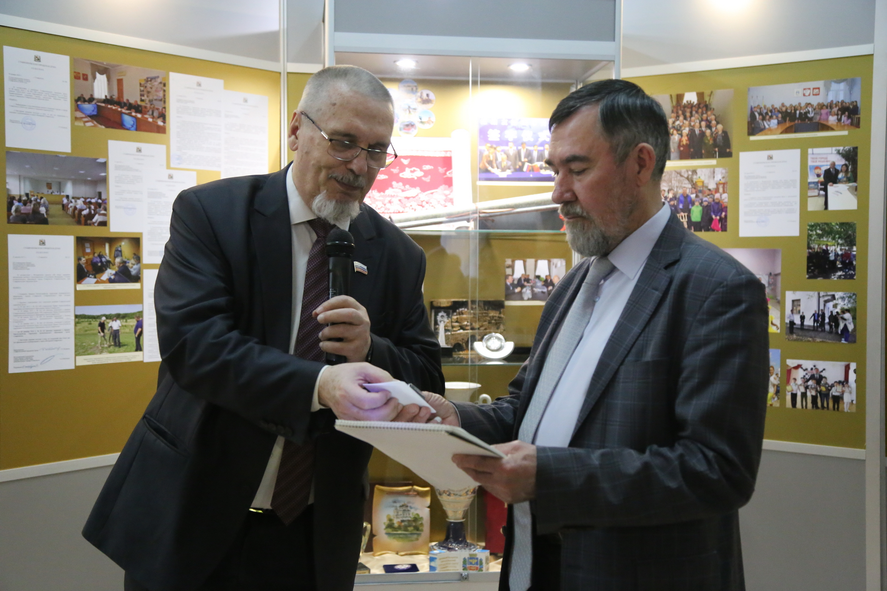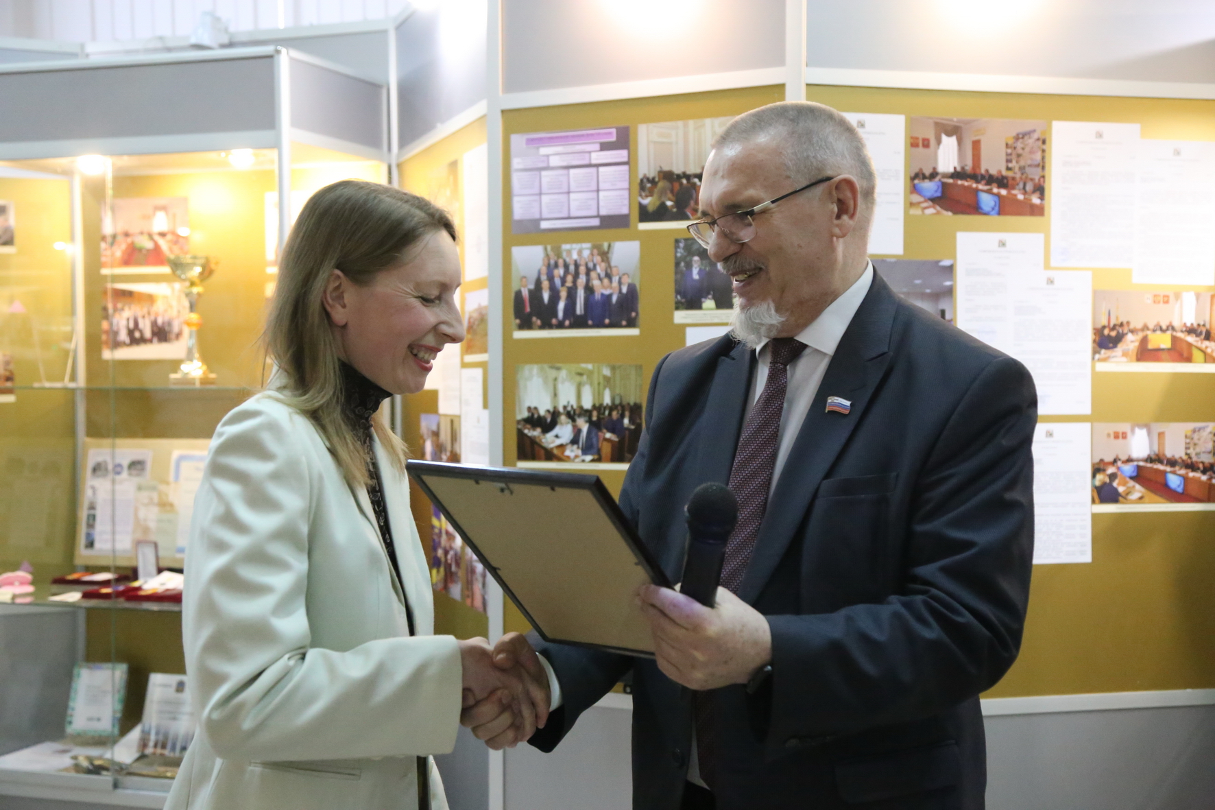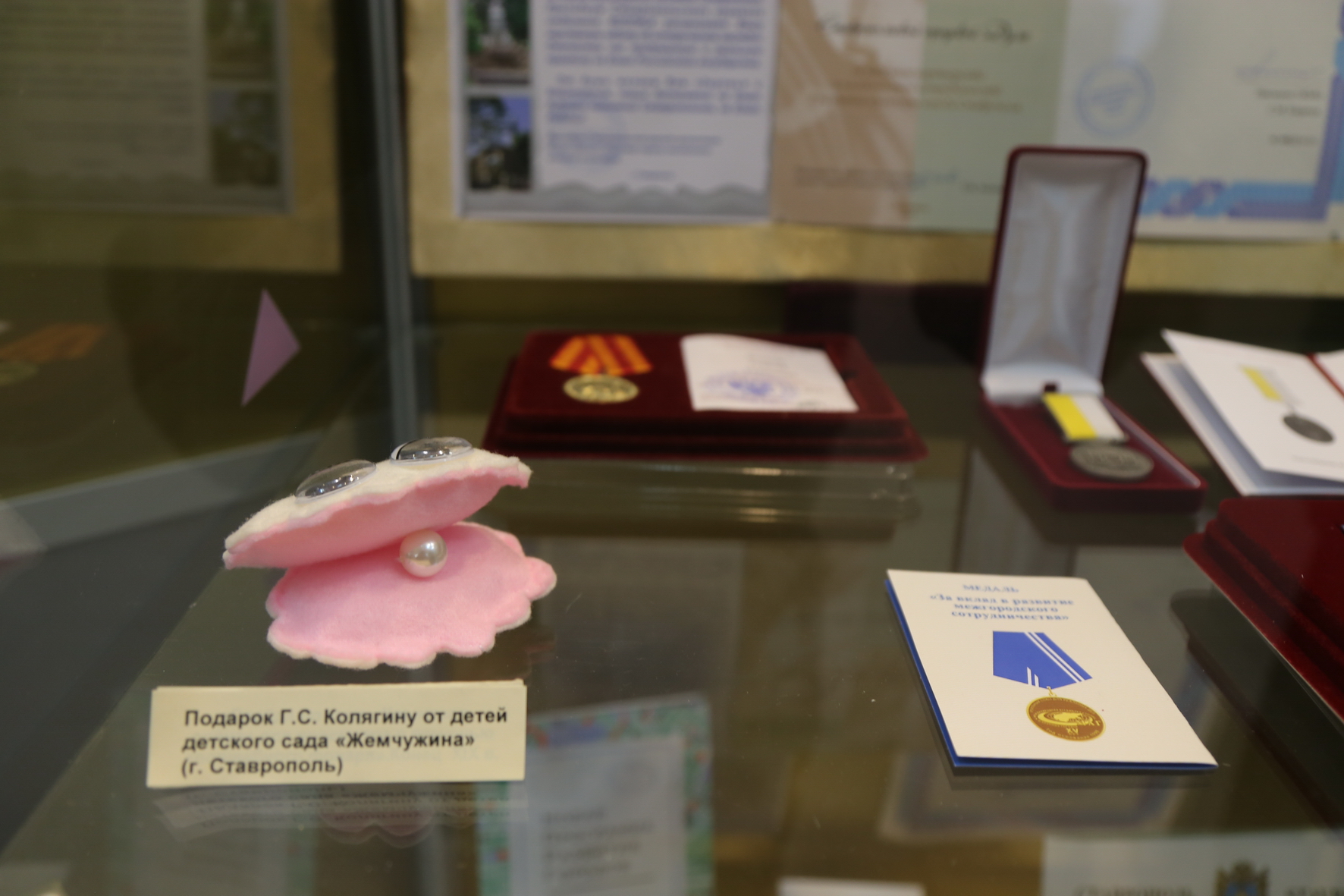 Георгий Колягин поблагодарил Николая Охонько и в его лице весь коллектив музея за организацию выставки, вручив заслуженному работнику культуры юбилейный нагрудный знак «25 лет Ставропольской городской Думе». Наградами также были отмечены сотрудники музея, оказавшие неоценимую помощь в подготовке юбилейных мероприятий и создании книги о Думе: заведующий отделом этнографии Андрей Гордиенко, заведующий отделом истории Мария Гордылева, старший научный сотрудник Татьяна Джонс.