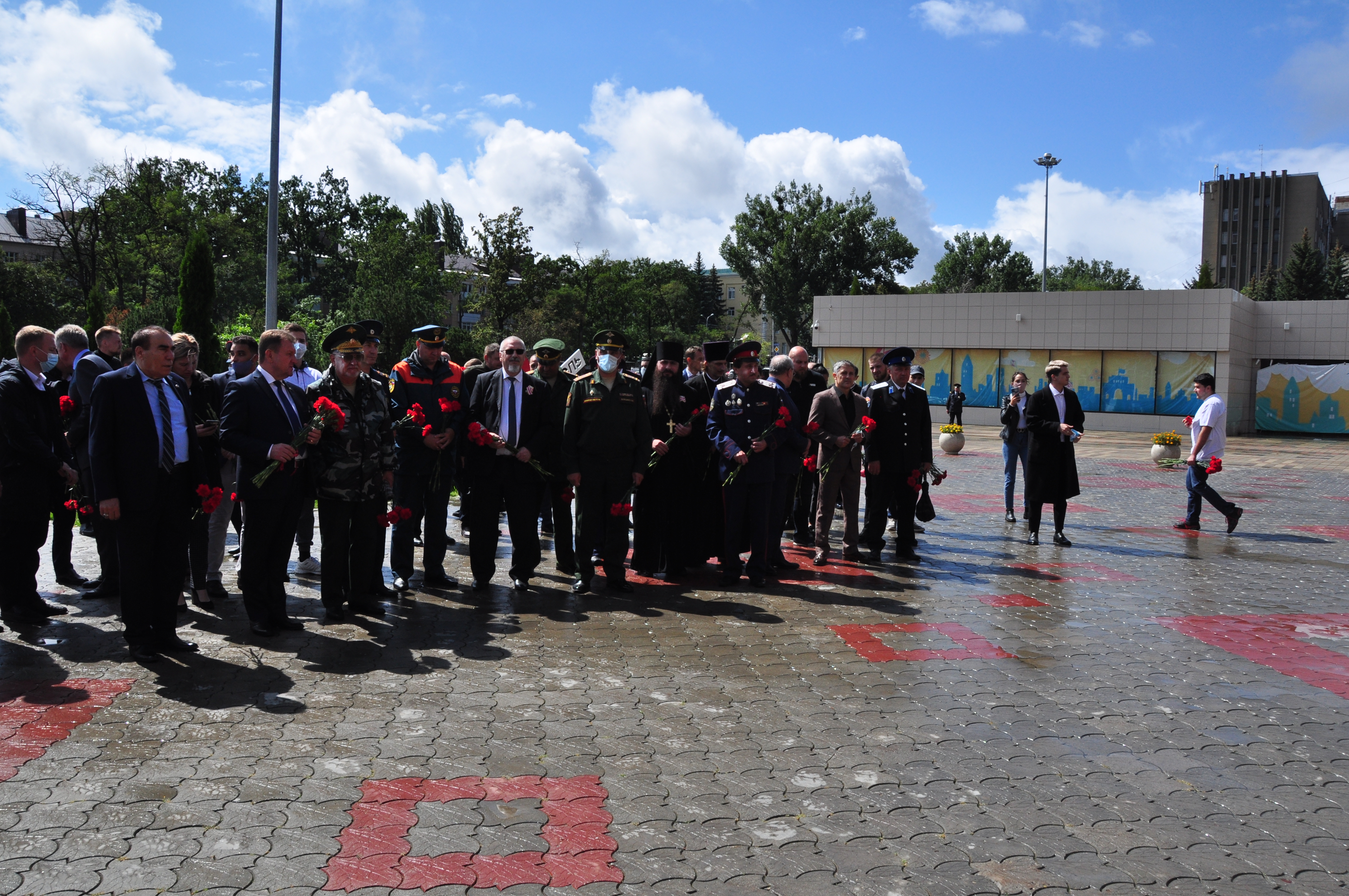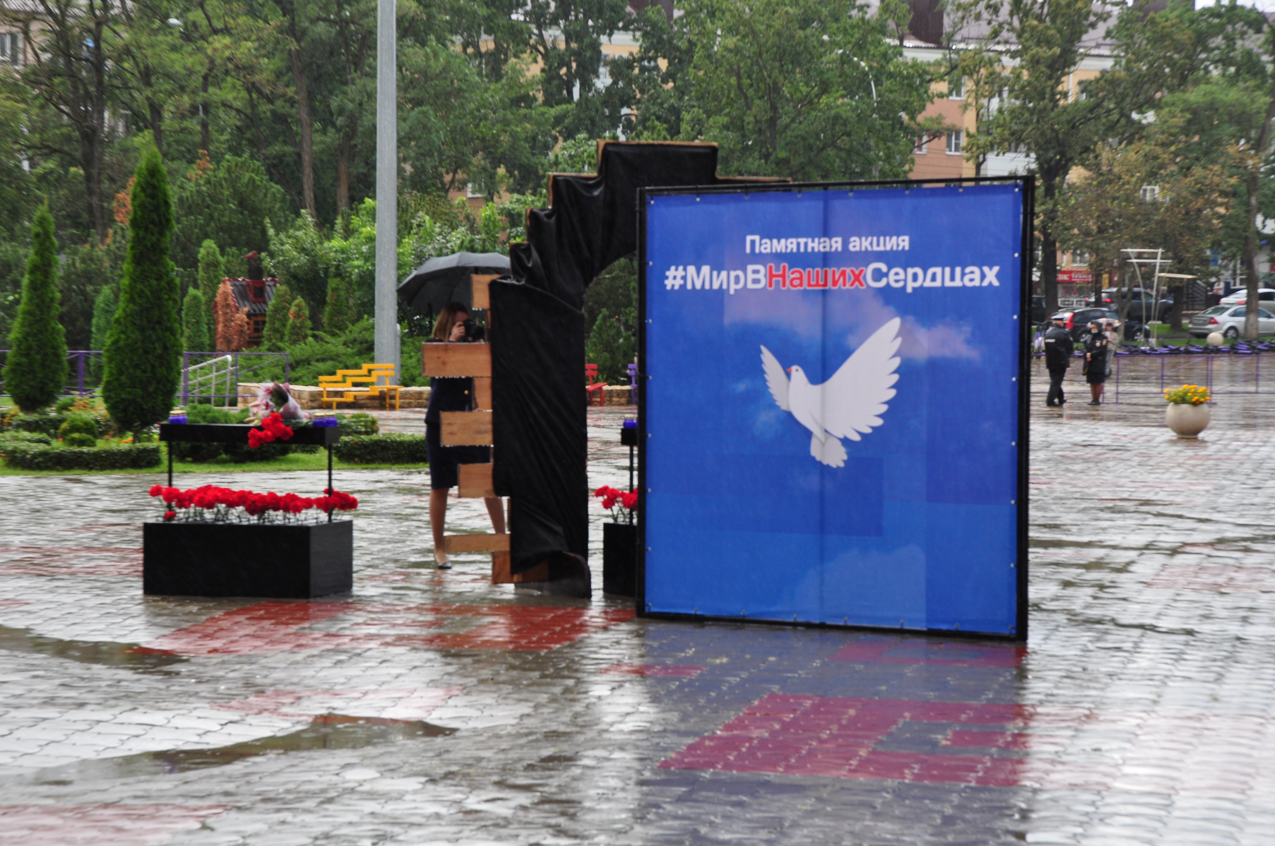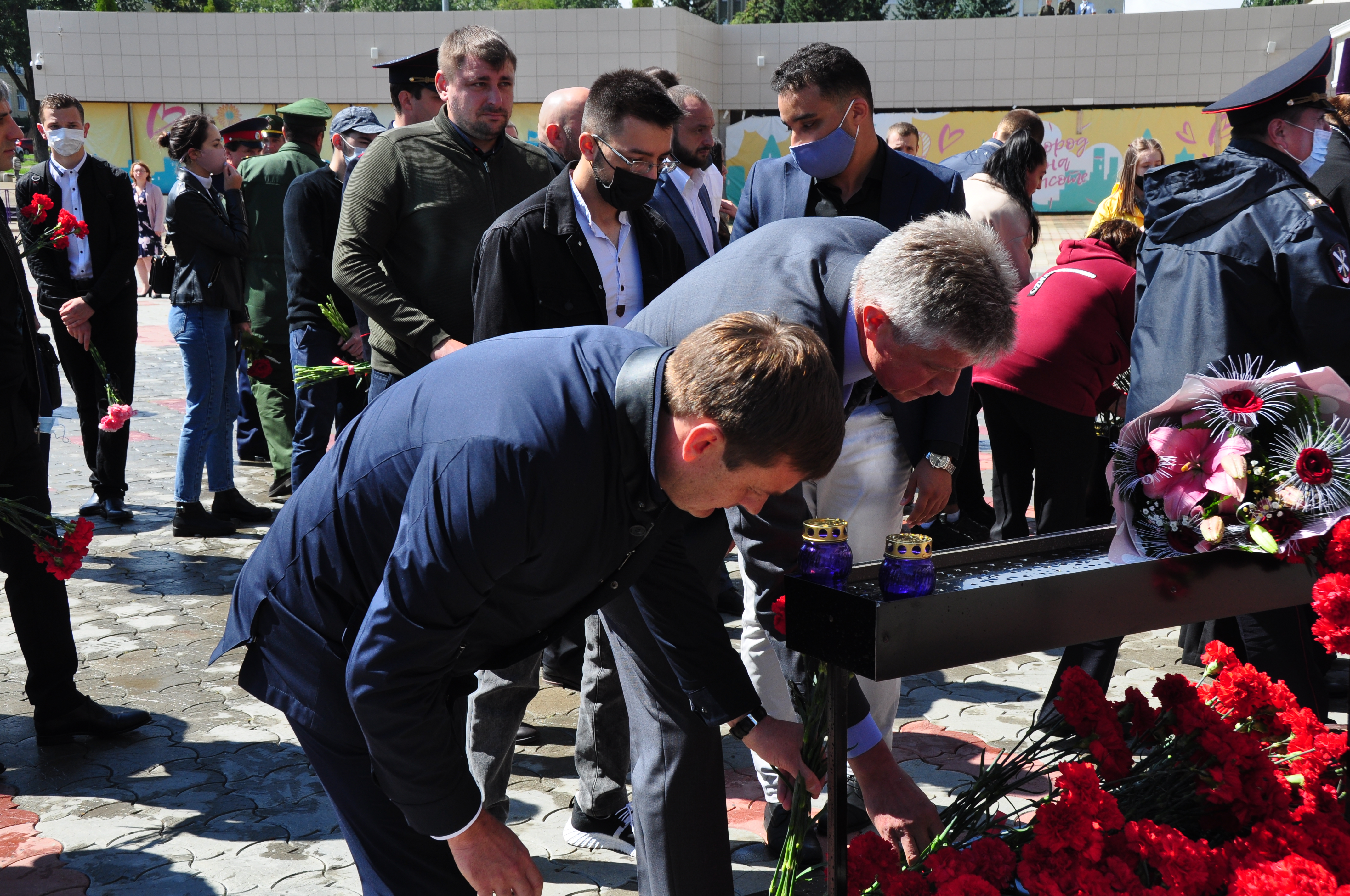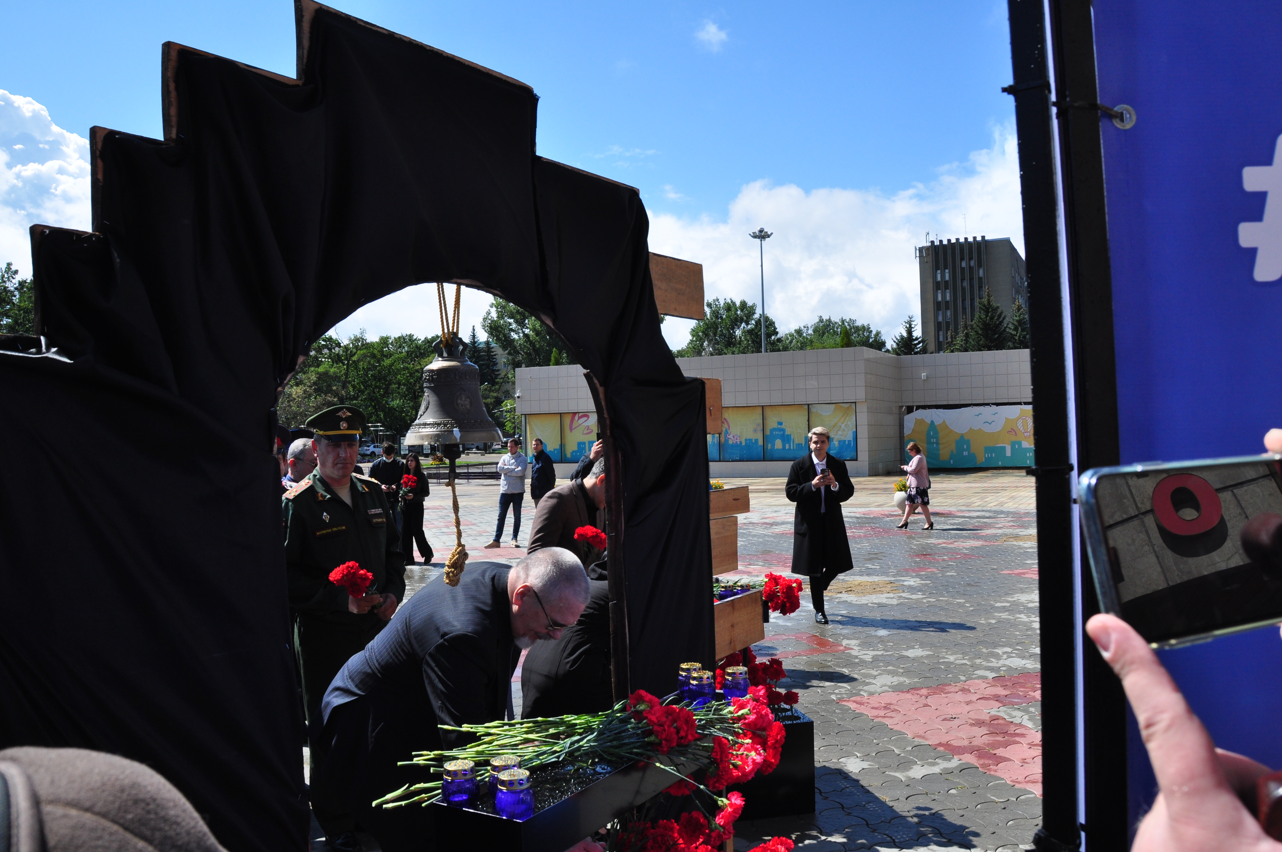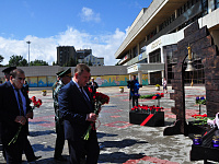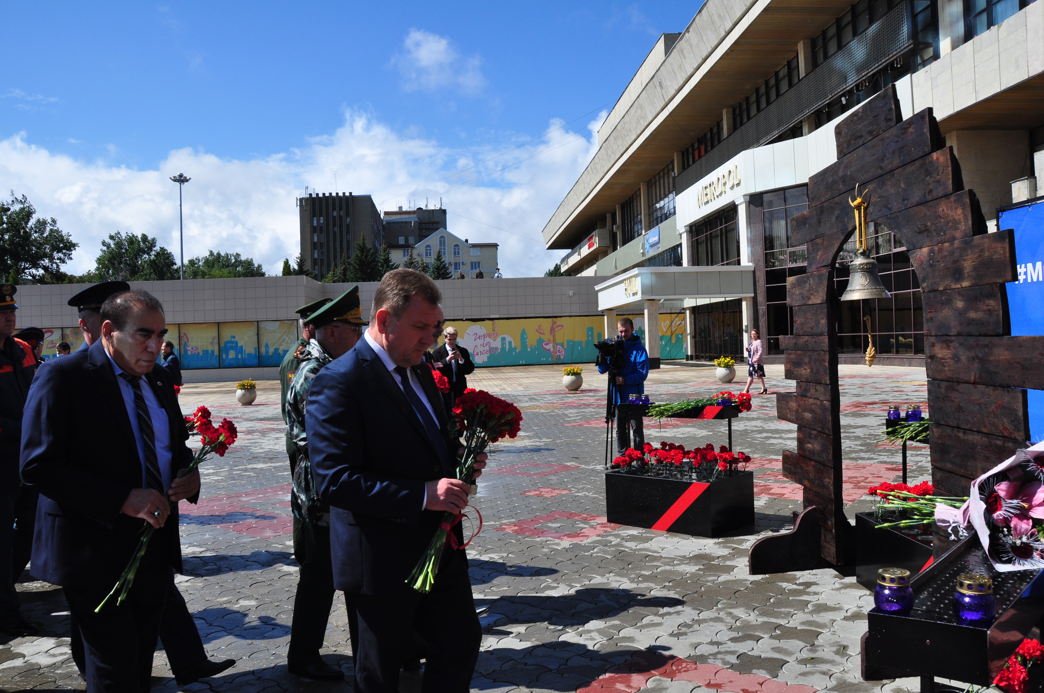 В Ставрополе мемориальная акция прошла у входа во дворец культуры и спорта. Место это было выбрано неслучайно. Именно здесь жертвами теракта в 2010 году стали восемь человек, 58 получили ранения. Память по погибшим символизировала инсталляция, центральной фигурой которой стал колокол на деревянном постаменте. А белоснежный голубь мира словно гласил о том, что подобные трагедии никогда не должны повториться. К этому пронзительному мемориалу цветы после минуты молчания возложили глава краевой столицы Иван Ульянченко, первый вице-спикер Думы Ставропольского края Дмитрий Судавцов, председатель Ставропольской городской Думы Георгий Колягин, депутат Александр Кочерга, представители силовых структур, епархии, общественных организаций.