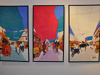 Каждый автор – носитель своего неповторимого стиля. И каждому удалось передать индийский колорит по итогам своего «хождения за три моря». Причем, что важно, сделать это вне стереотипов и штампов, а очень свежо и естественно. Александра Фатеева из Краснодара своей кистью виртуозно отразила эмоции и характеры, показала радости и печали своих героев. Ее Индия – предельно теплая, почти золотая. Алла Половниченко из Москвы поразила яркостью палитры местного базара, с ее картин натурально ощущаешь лучи южного солнца. Антонина Володченко из Питера презентовала роскошную коллекцию графики. А хозяйка вечера, Александра Тарасова, встречающая гостей в потрясающем сари цвета индиго, так идущем к ее голубым глазам, наряду с живописными работами показала свою излюбленную технику графики на газетах, причем индийских, что сделало творения еще более атмосферными. Александра говорит, что всегда старается в путешествиях погружаться в местный колорит, обязательно купить что-то на память, и это помогает работе. Что ж, и на сей раз эй это удалось отлично.