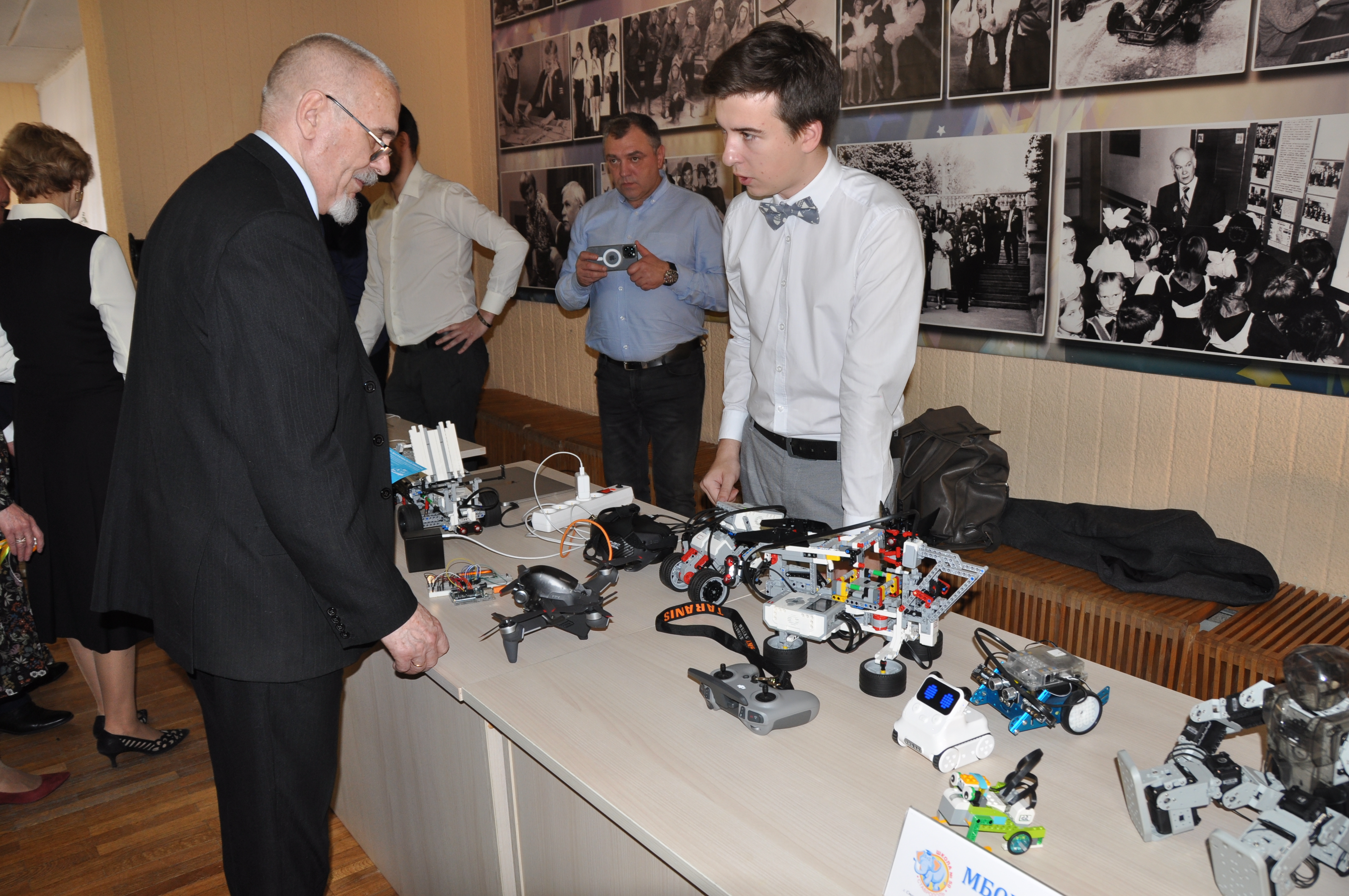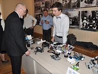 Привлек внимание гостей и стенд кружка робототехники, который уже несколько лет успешно функционирует на базе 50-й школы Ставрополя. Педагог Кирилл Гончаренко, показывая мудреные модели, пояснил, что главное заинтересовать детей, дать им почувствовать благодаря занятиям в кружке вкус к наукам - математике, физике, открыть увлекательные перспективы профессий будущего. Причем не с позиции учебника, а в плане сугубо прикладном, что называется, «на кончиках» пальцев. Кстати, робототехника привлекает не только мальчишек. Девочки тоже охотно занимаются прогрессивными разработками. И хотя в процентном соотношении они мальчишкам количественно уступают, но берут, что называется качеством - усидчивостью и системным подходом. Напротив роботов разместилась галерея портретов ставропольских учителей, написанных их учениками. Здесь же юные «Брюлловы» творят в режиме реального времени. А в двух шагах баталия развернулась за шахматной доской, и Георгий Колягин, большой поклонник этой игры, дал дельный совет одному из соперников относительно следующего хода.