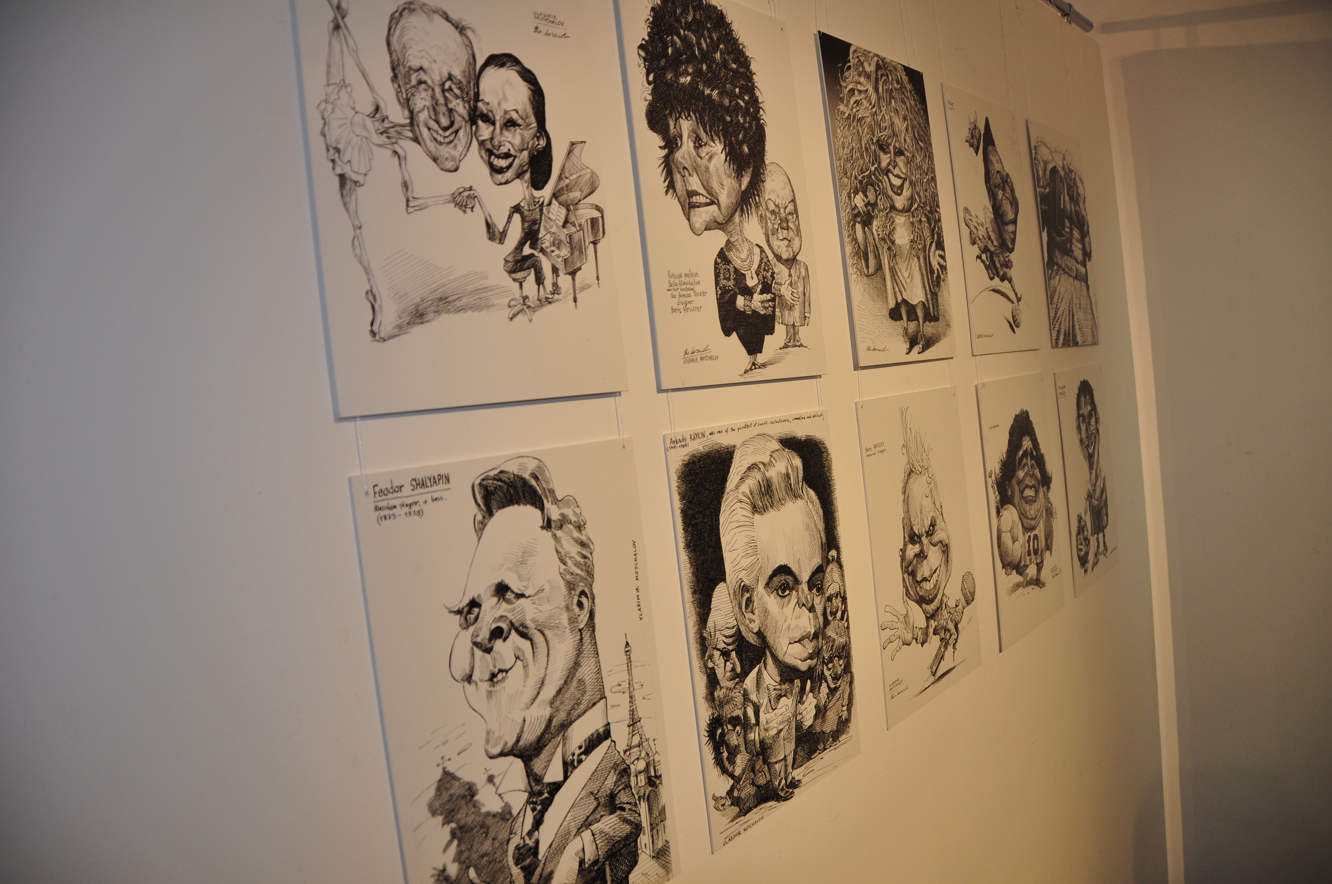 В одном ряду в галерее «Паршин» оказались политики, звезды кино, шоу-бизнеса, поэты, музыканты. У каждой работы – своя история, своя судьба. К примеру, шарж Аллы Пугачевой рождался непросто, негодовавшей Примадонне все время не нравился результат. А легендарная балерина Майя Плисецкая, которую Владимир Мочалов нарисовал как единое целое с ее супругом - композитором Родионом Щедриным, работой осталась весьма довольна.