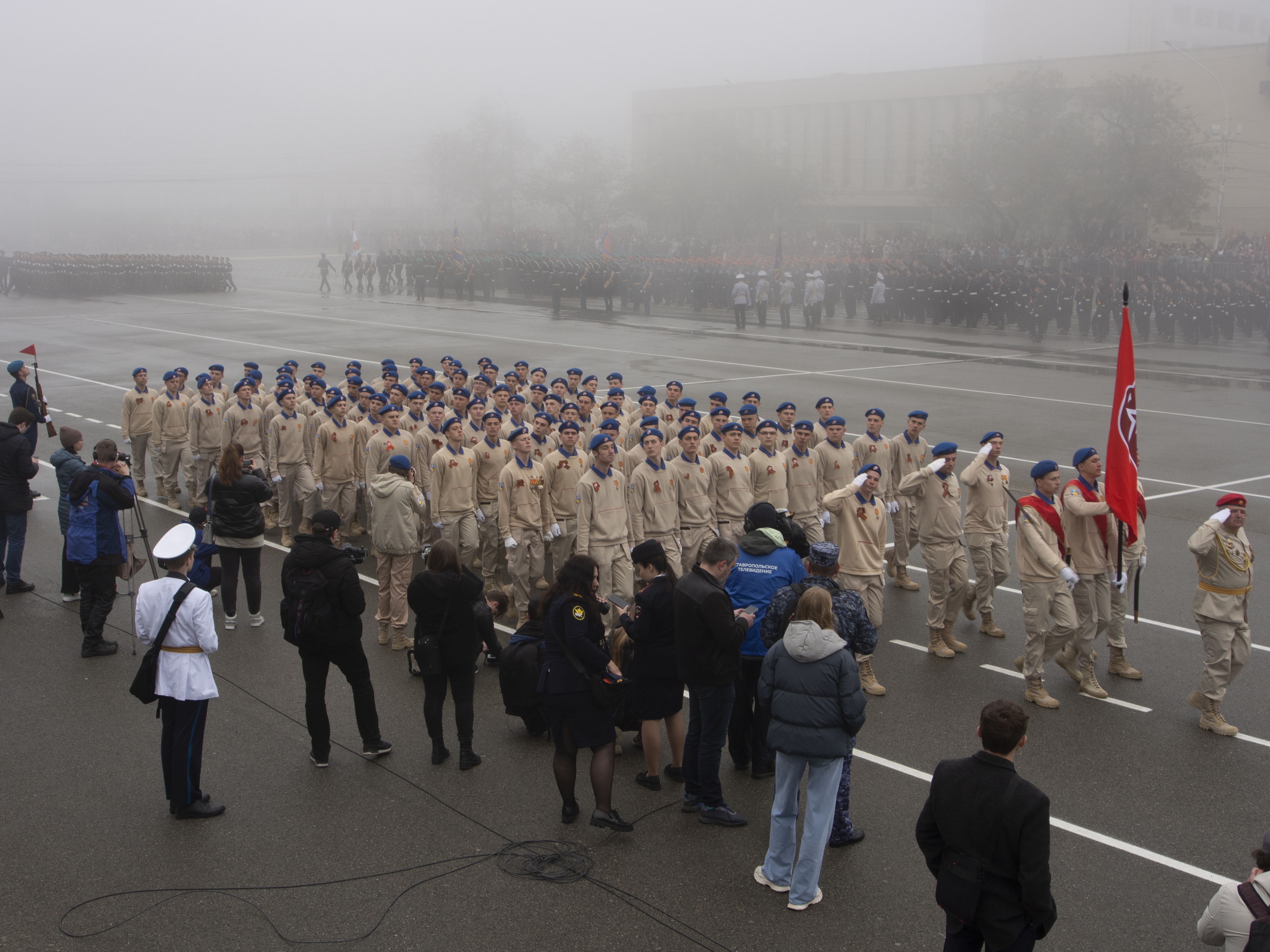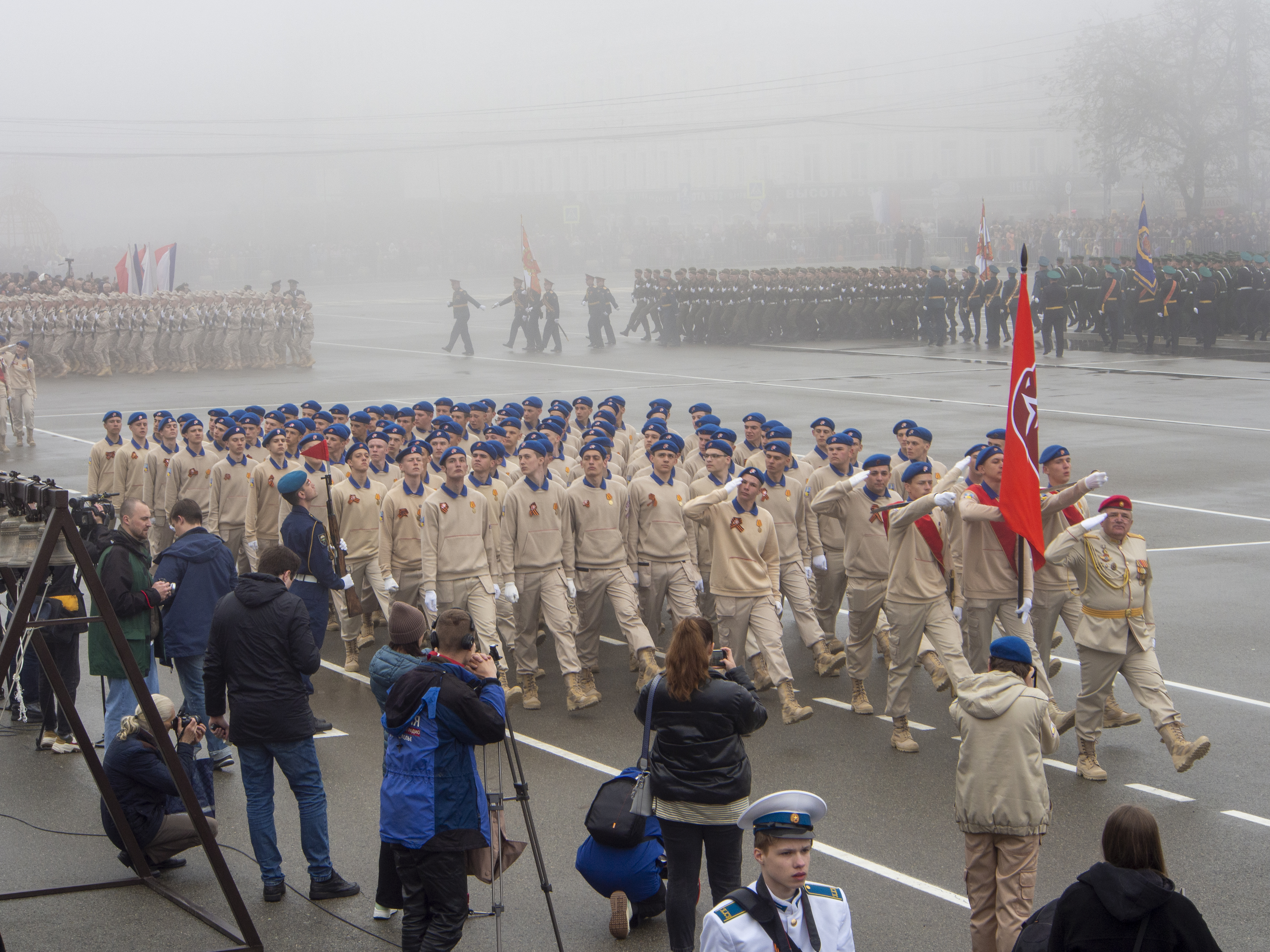 Участниками в торжественного прохождения на площади Ленина стали полторы тысячи человек. В их числе — представители Росгвардии, военные из разного рода войск, представители казачества, кадеты и юнармейцы, сотрудники МЧС.