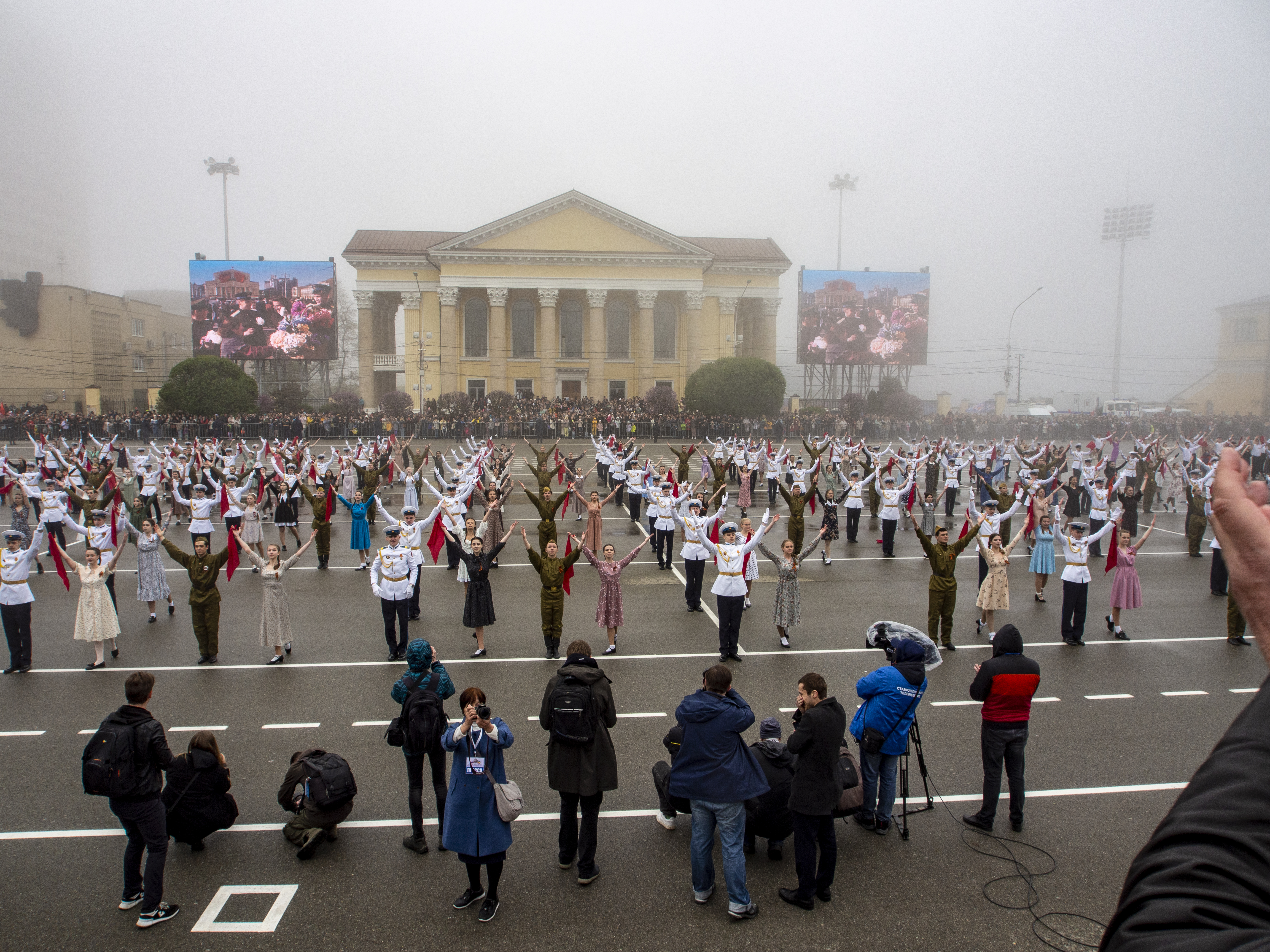 Завершился Парад масштабным действом – было развернуто огромное Знамя Победы. А затем студенты ставропольских вузов исполнили вальс Победы.