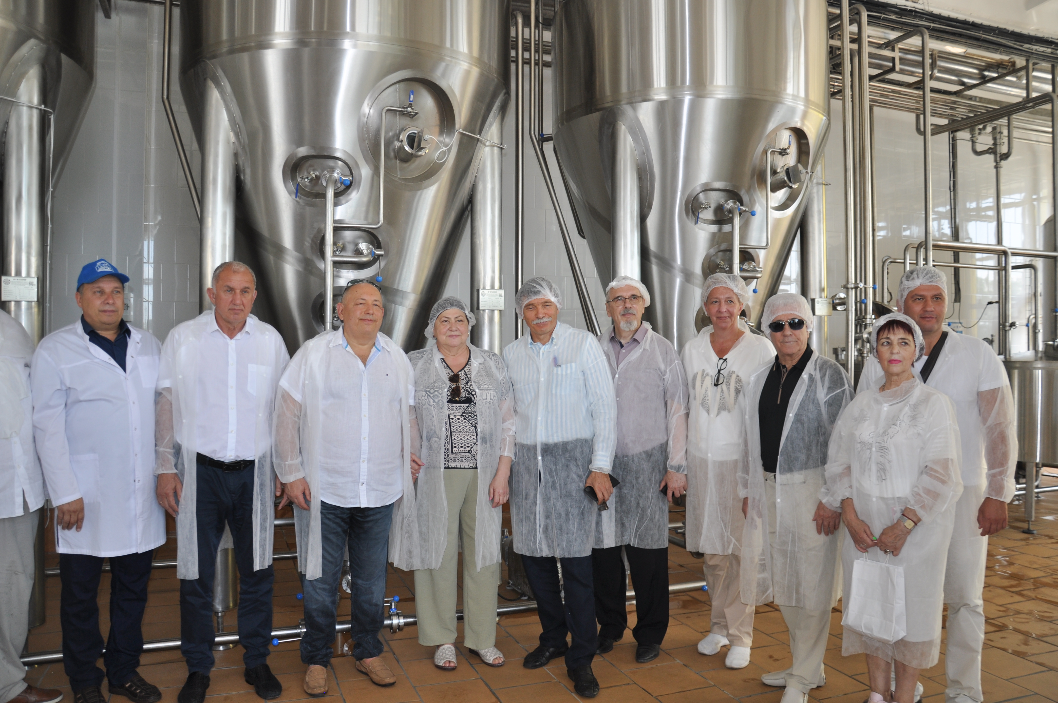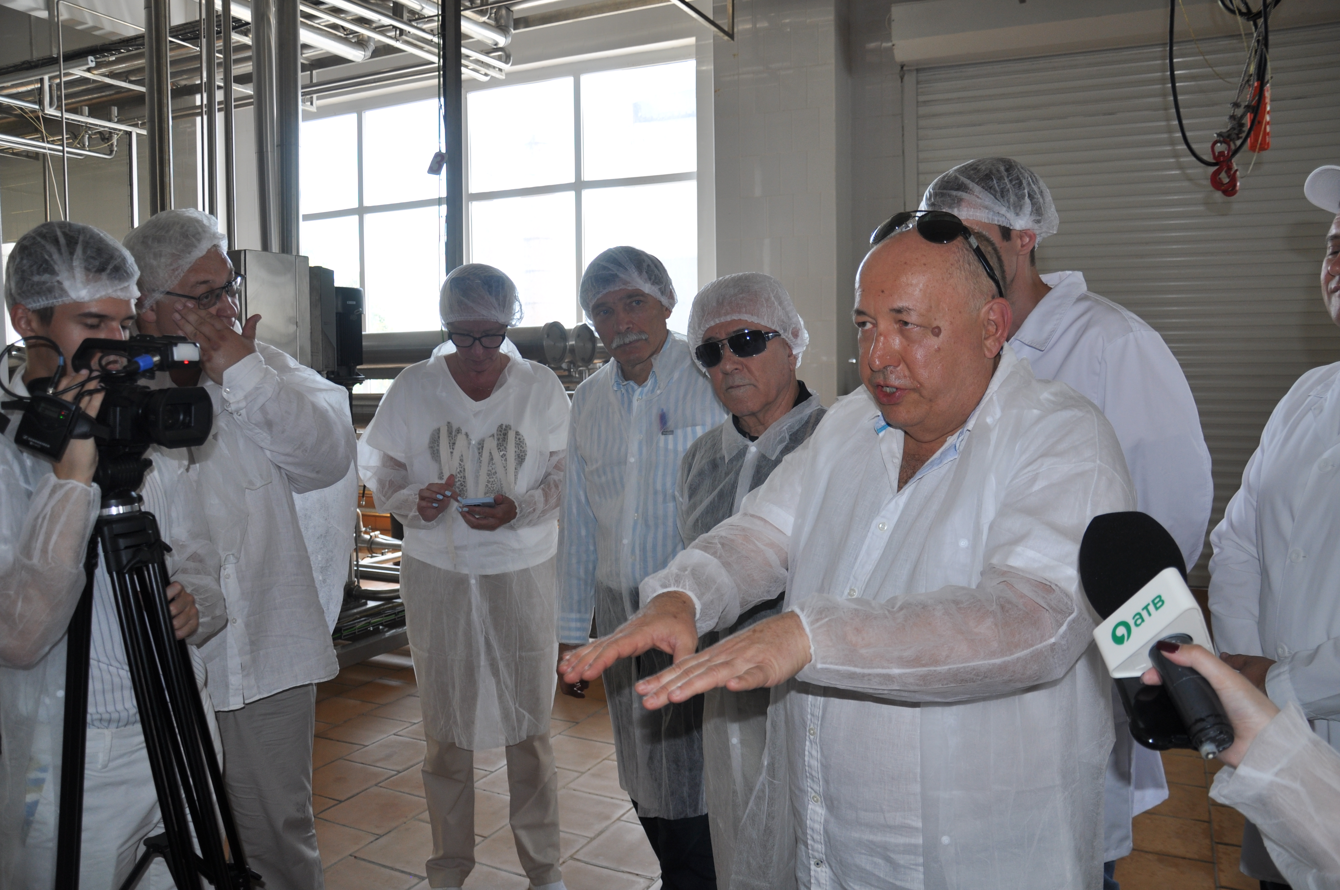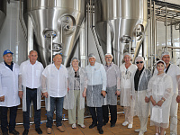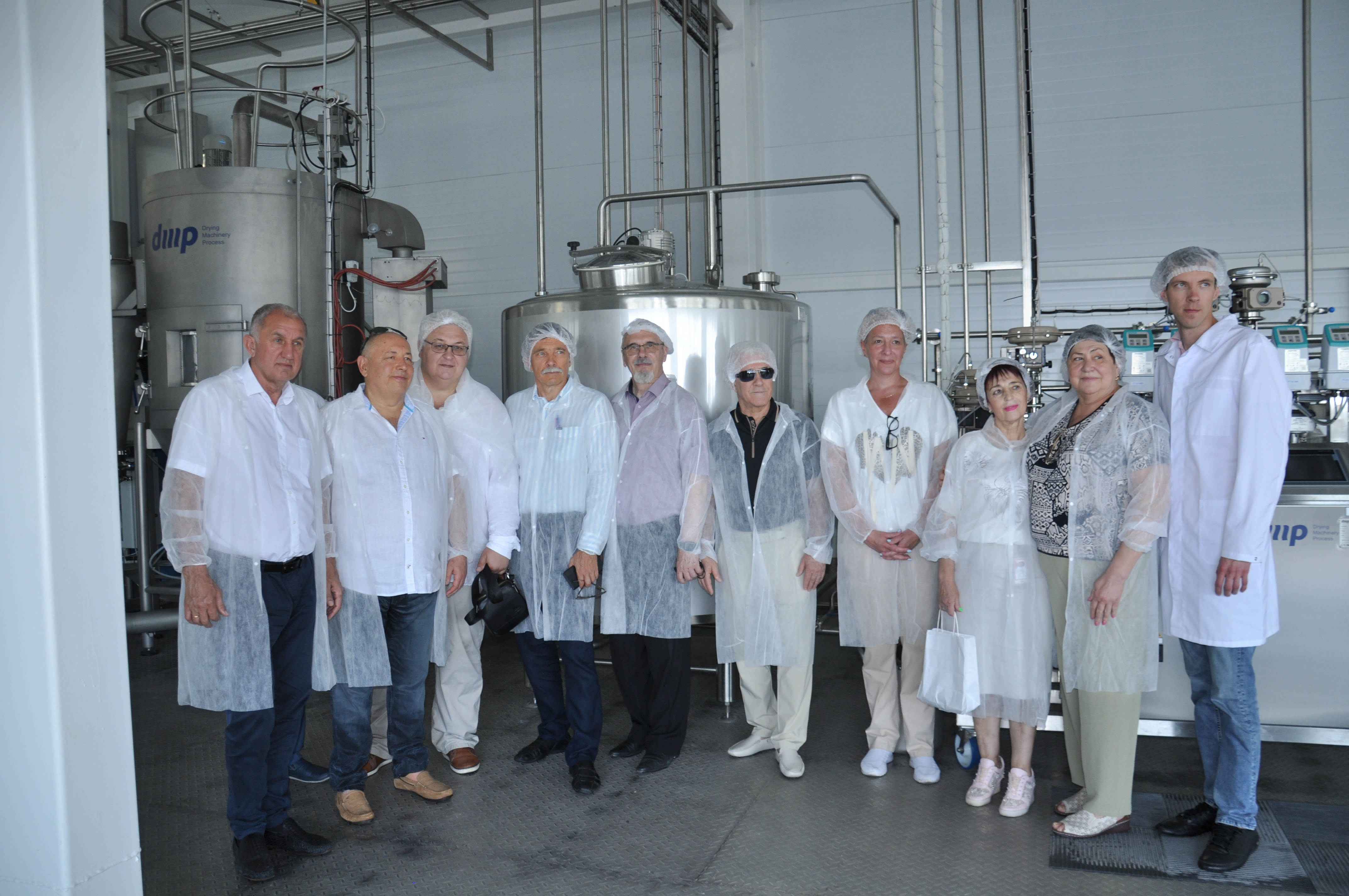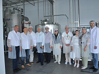 Гости совместно с руководством молкомбината, учеными-разработчиками прошлись по цеху производства лактулозы.