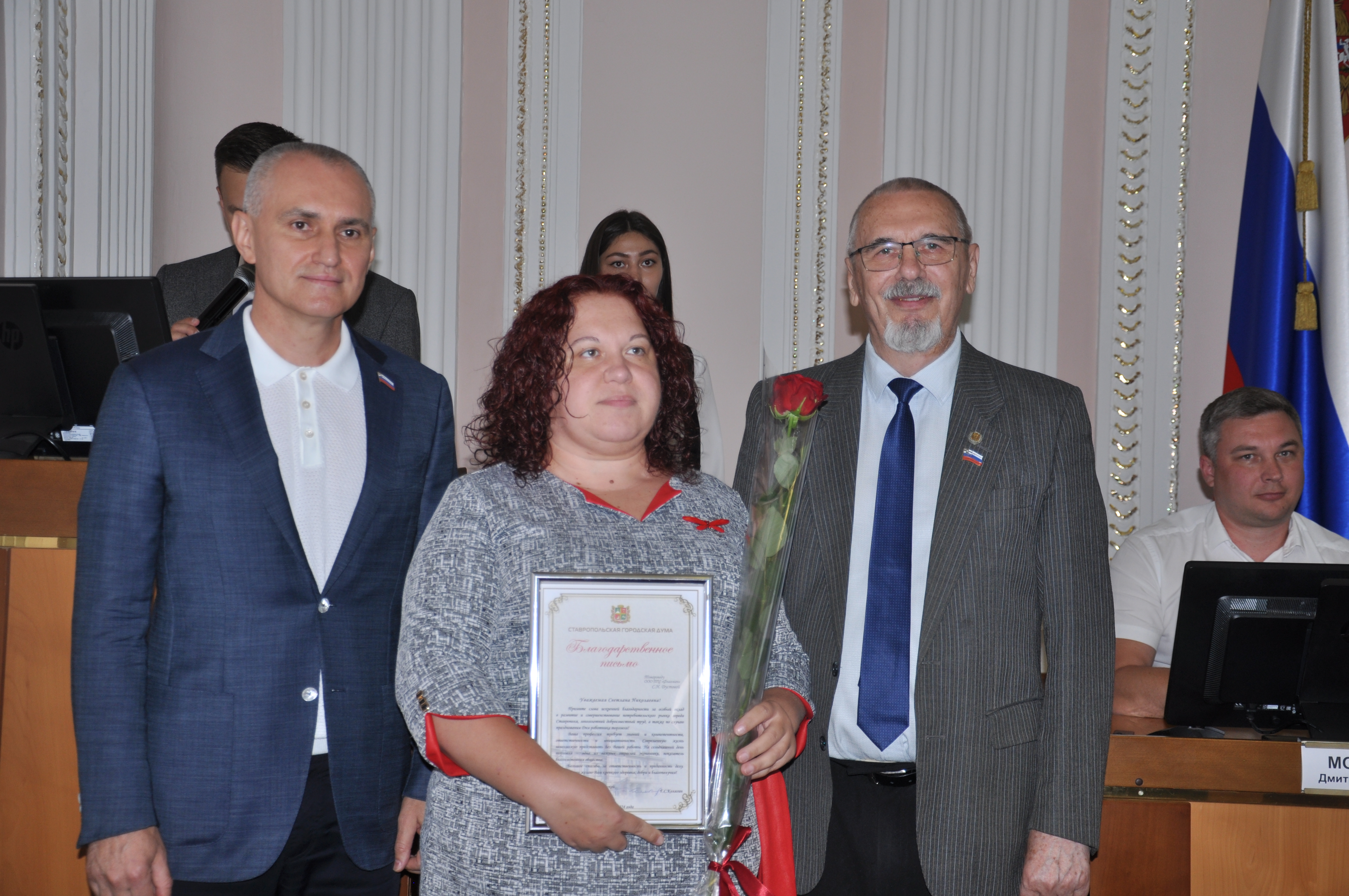 «На всем протяжении развития Ставрополя торговля была, есть и будет одной из отраслей, определяющей экономическое развитие и лицо нашего города. Изучая материалы, связанные с более чем двухвековой историей Ставропольской городской Думы, могу сказать, что, начиная с 1812 года, десятилетиями городскими главами Ставрополя избирались купцы. Они хорошо знали нужды людей, предоставляли населению широкий круг продовольственных и других товаров. Вы продолжаете эту миссию, обеспечивая жителей города всем необходимым. Сердечно поздравляю вас с праздником, желаю профессиональных успехов и здоровья», – выразил слова признательности председатель городской Думы.