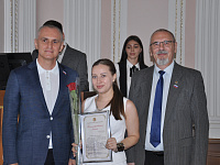Георгий Колягин также поблагодарил присутствующую на мероприятии ветерана Великой Отечественной войны Енину Тамару Ивановну, которой в этом году исполнилось 100 лет. Помимо того, что Тамара Ивановна ветеран войны, она еще и ветеран торговой отрасли. За ее плечами работа в городском хлебторге и в сфере общественного питания на заводах «Нептун», «Сигнал», «Электроавтоматика», «Изумруд», «Красный металлист» и других.