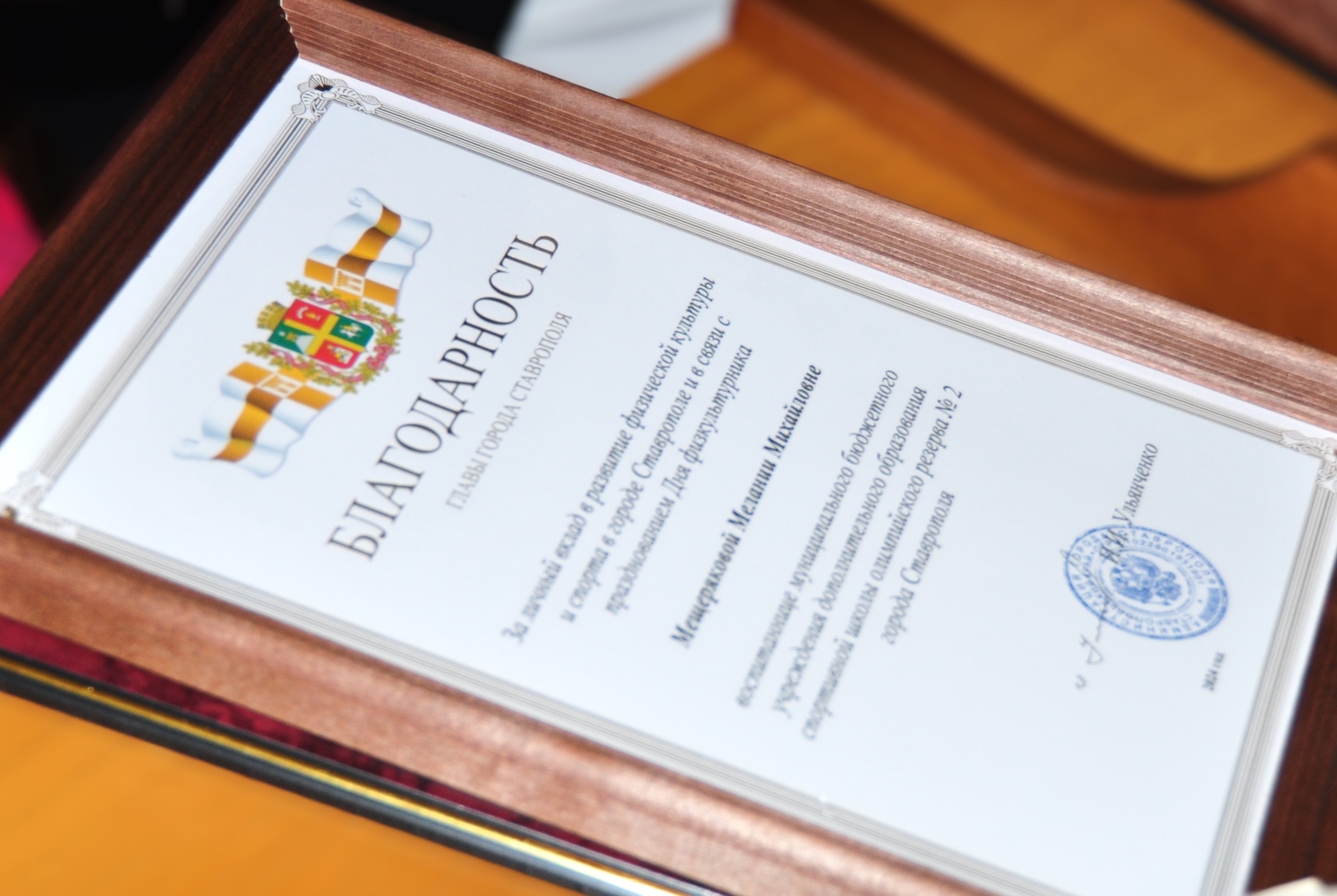 Почетные грамоты Ставропольской городской Думы из рук председателя получили замдиректора спортивной школы олимпийского резерва № 2 Людмила Беликова и тренер-преподаватель этой же школы Елена Дудкина.