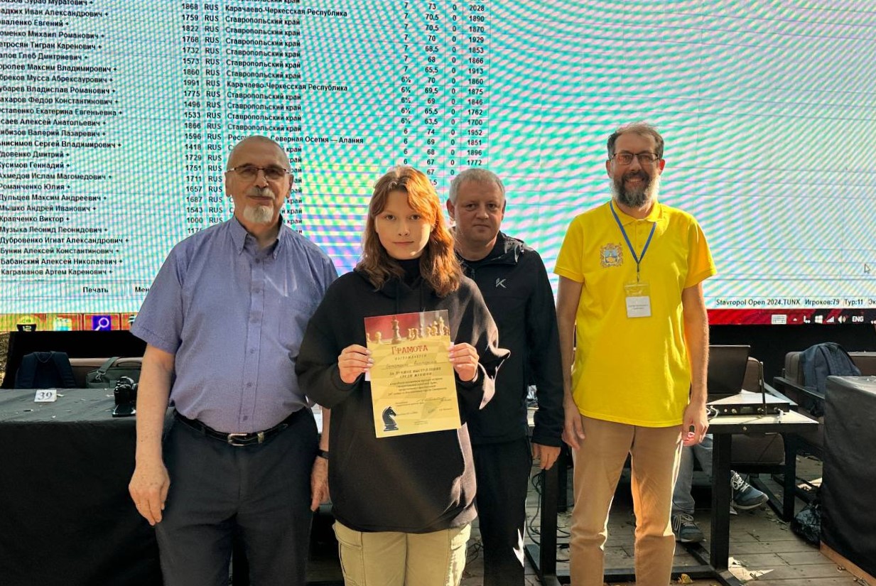 В дополнительных номинациях были отмечены: Екатерина Остапенко – лучшая среди женщин, Валерий Кибизов – первый результат среди ветеранов, Егор Долгополов – победил в возрастной категории до 17 лет, Зураб Айбазов – в категории до 15 лет, Андрей Попов – набрал больше всего очков в категории «ЭЛО менее 2100».