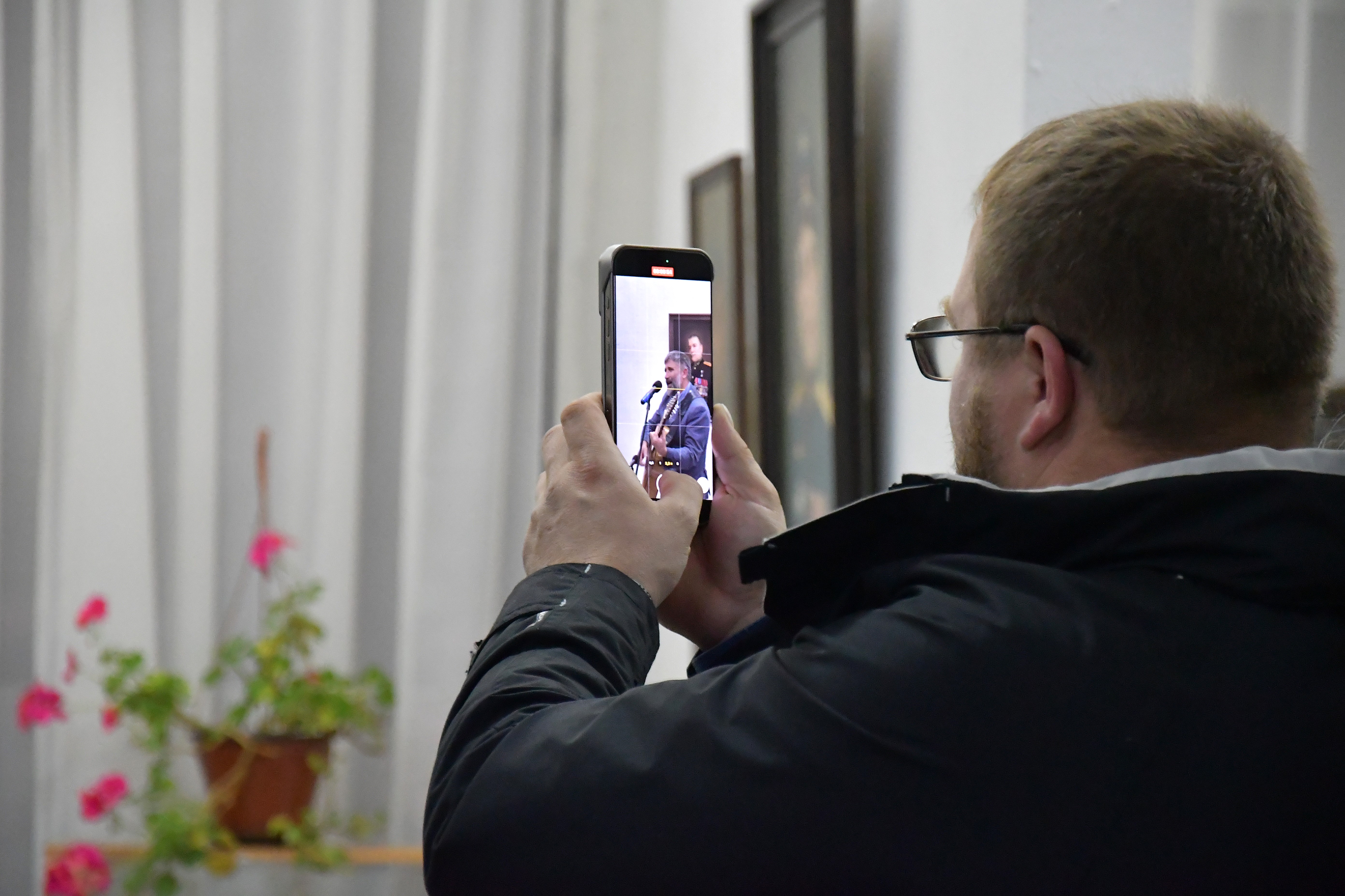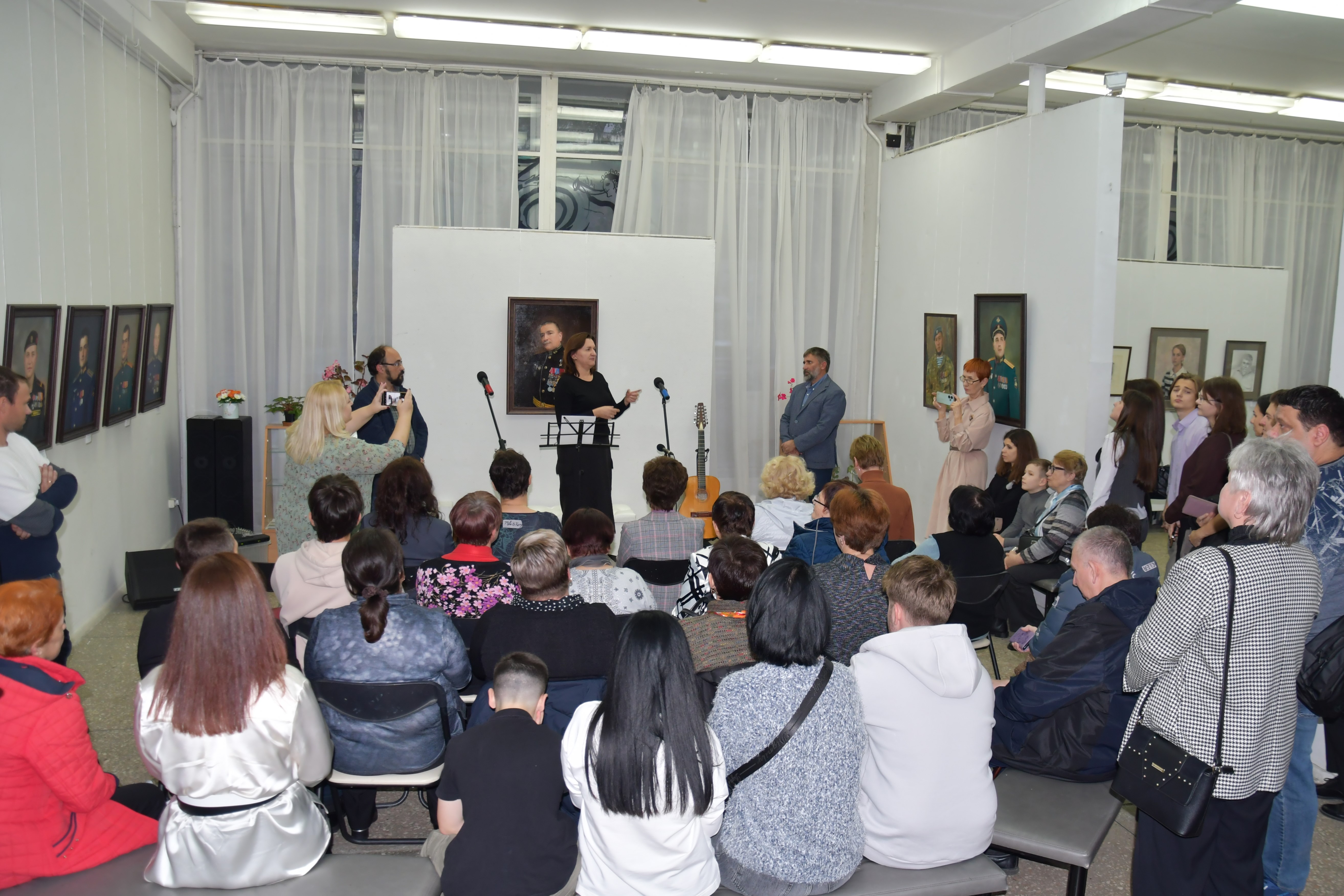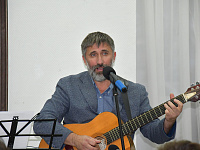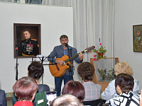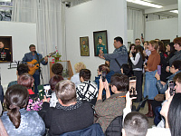 Эпиграфом к торжественной части мероприятия послужила песня, первая строчка которой дала название всей экспозиции. Исполнил лирическое произведение сам Александр Инячко, хорошо известный на Ставрополье как талантливый бард. На протяжении всего вечера его песни перемежались с приветственными выступлениями приглашенных лиц. Звуки душевных мелодий придали творческому вечеру особую теплоту и стали своеобразными, почти осязаемыми штрихами к портретам.
