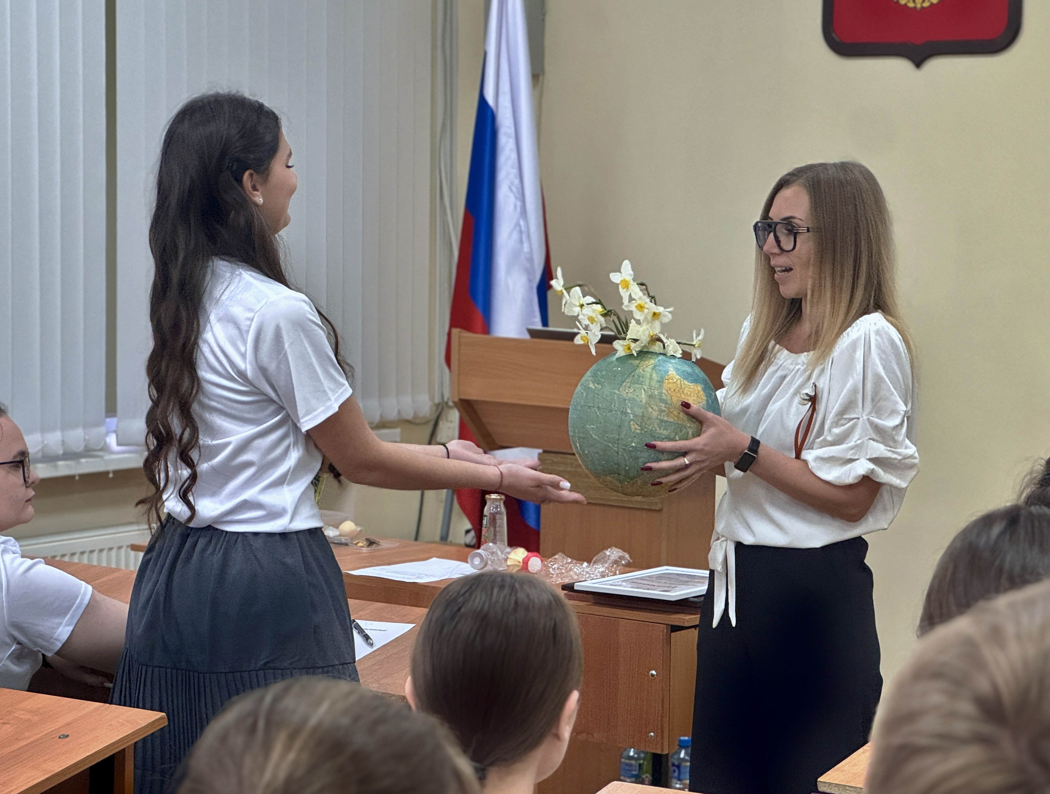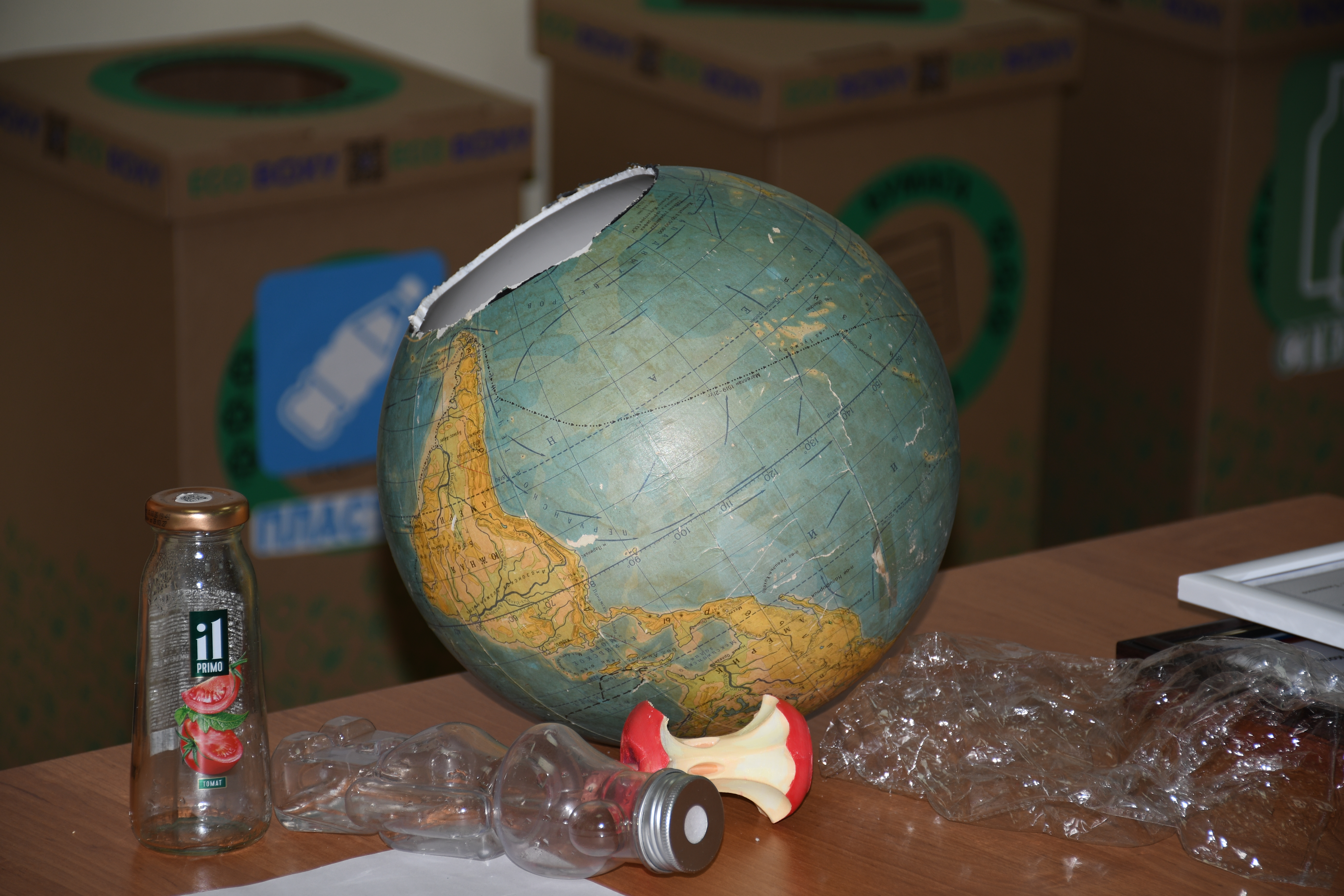 Новаторский подход и креативность на протяжении всего цикла занятий демонстрировала учитель истории и обществознания лицея № 17 Анжелика Каткова. Так, на заключительном уроке, посвящённом теме обращения с твёрдыми коммунальными отходами (ТКО), она начала занятие с глобуса, из которого «выпал» мусор.