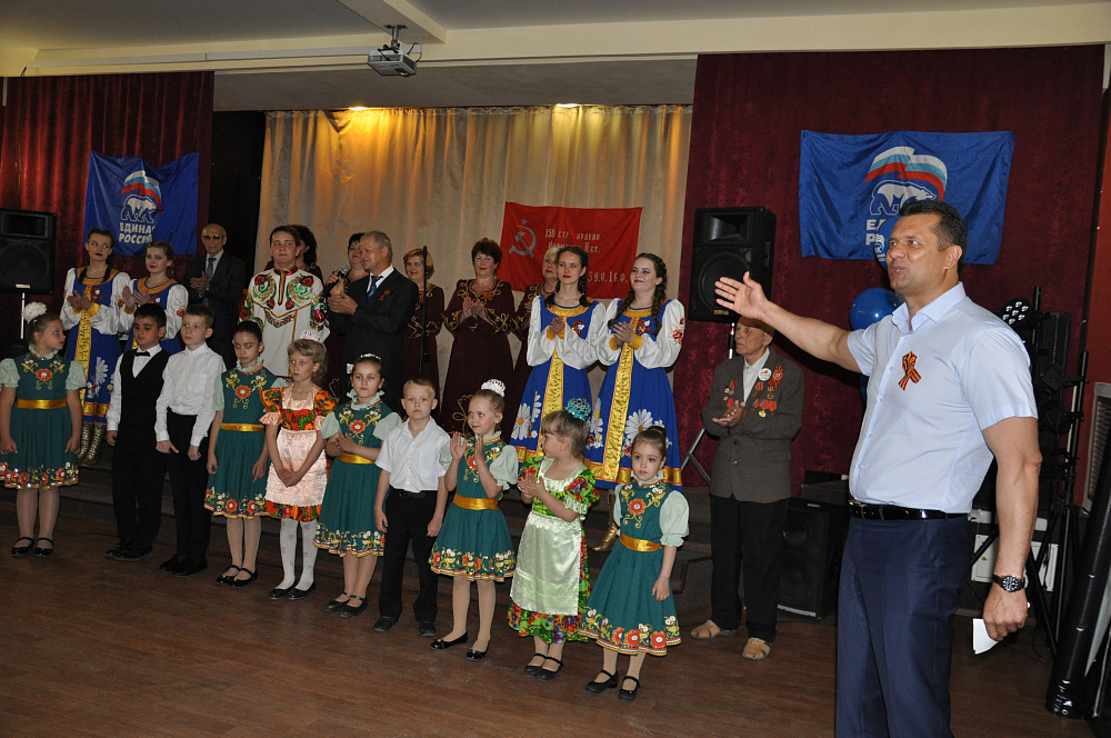 Евгений Пятак поздравил всех собравшихся с праздником, адресовав особые слова благодарности ветеранам и труженикам тыла: «Без вас не было бы нас. Мы не смогли бы радоваться тому, что у нас есть, растить детей под мирным небом. Вы все нам очень нужны, чтобы на вашем примере мы могли воспитывать своих детей. Огромное вам спасибо и низкий поклон за то, что вы сделали в свое время. Не дай Бог, чтобы нашему или следующему поколению пришлось пережить то, что вам пришлось пережить. В те годы родились слова, в которых заключена соль жизни: все стерпим, лишь бы не было войны. К сожалению, моих дедушек уже нет на свете, они тоже внесли свой вклад в Победу».
