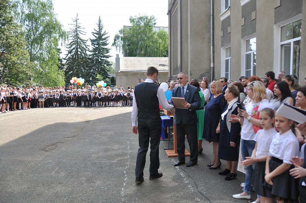 Георгий Колягин пожелал удачи не только будущим абитуриентам, но и ученикам 9-х классов, которые также будут держать экзамены и подтверждать свой уровень на государственной итоговой аттестации. «Хоть в календаре день последнего звонка и не отмечен красным цветом, - заметил спикер, - для всех нас: родителей, детей, учителей, это один из самых радостных дней в году. Он показывает, сколько школьных ступеней вы оставили позади. Первоклашки одолели только первую, а выпускники свой школьный путь уже почти прошли». Лучшие ученики школы за достижения в учёбе получили из рук председателя Думы грамоты, а учителя – благодарственные письма.