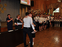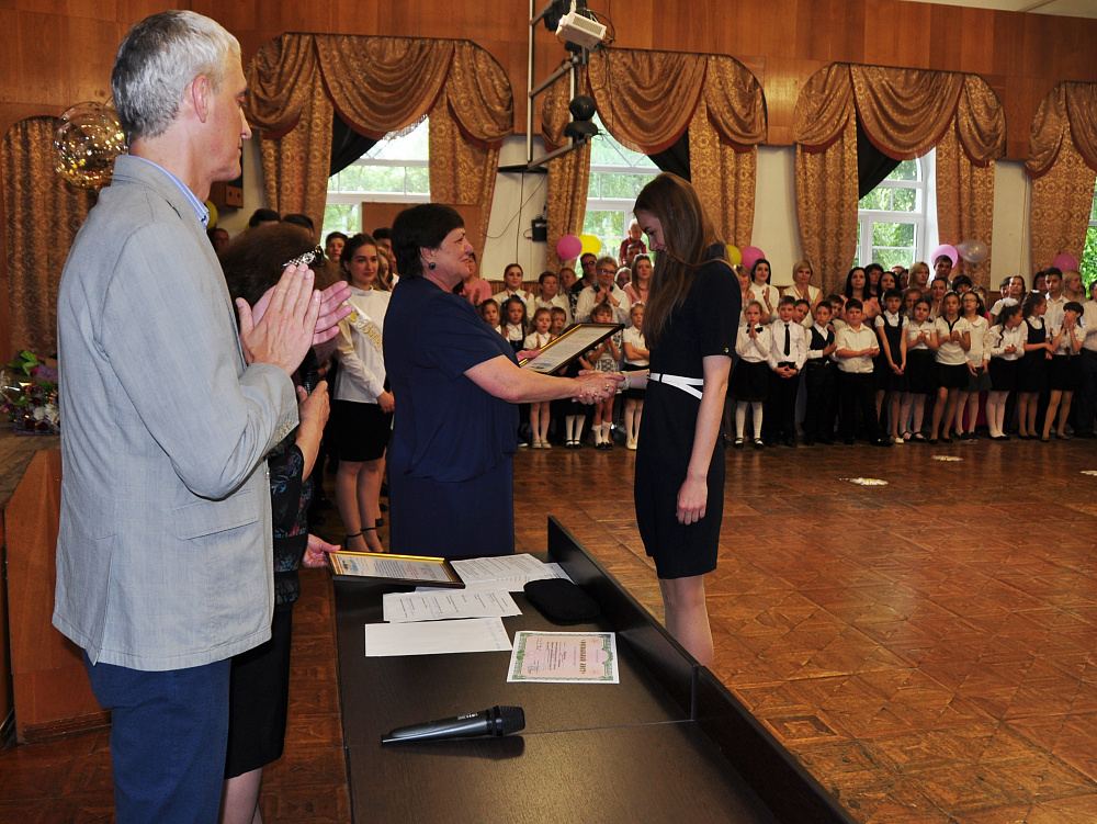 Праздничная линейка по случаю окончания учебного года началась с торжественного вноса в актовый зал флага Российской Федерации под марш Преображенского полка. Чеканя шаг, отличники учёбы пронесли перед строем нарядно одетых ребят символ России. Первой своих воспитанников поздравила директор уникального учебного заведения Татьяна Захарина. Лучшим ученикам она вручила похвальные листы министерства образования, теперь уже министерства просвещения: «Это ваш успешный старт в будущую взрослую жизнь, умение сосредотачиваться, отлично работать, умение организовывать себя. Это классно! Спасибо вам за такие результаты». Церемония награждения получилась скорее дружеской, чем официальной, ведь ребят ждали не только награды, но и тёплые материнские объятия Татьяны Григорьевны. И, как любящая мать, она позволила себе немного похвастаться перед почётными гостями. Ученик выпускного класса Саид Курбанов всего за неделю до последнего звонка вернулся со всероссийского первенства по лёгкой атлетике, привезя с собой «золото» и две «бронзы» престижного соревнования. «Я хочу всем сказать: это не игрушки, это настоящие медали! Саид включён в состав сборной России для участия в европейском первенстве по лёгкой атлетике в июне этого года в болгарской Софии. Мы все желаем ему удачи. Это такой замечательный, надёжный мальчик!» - с гордостью характеризовала ученика Татьяна Захарина. Больших спортивных успехов добилась ещё одна воспитанница школы Вика Моисеева, с тех же легкоатлетических соревнований она привезла две медали высшего достоинства.