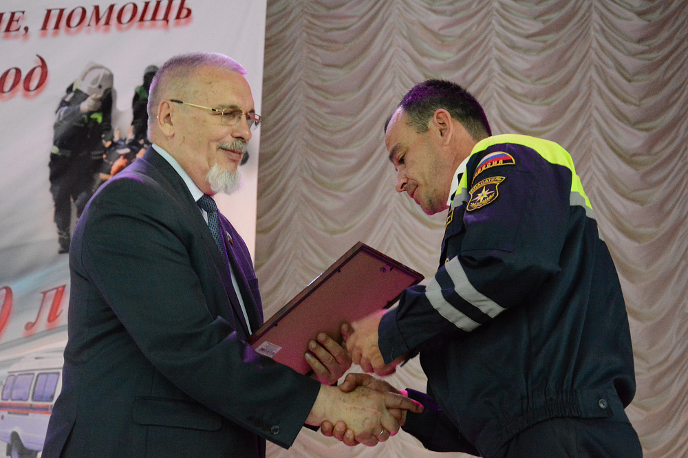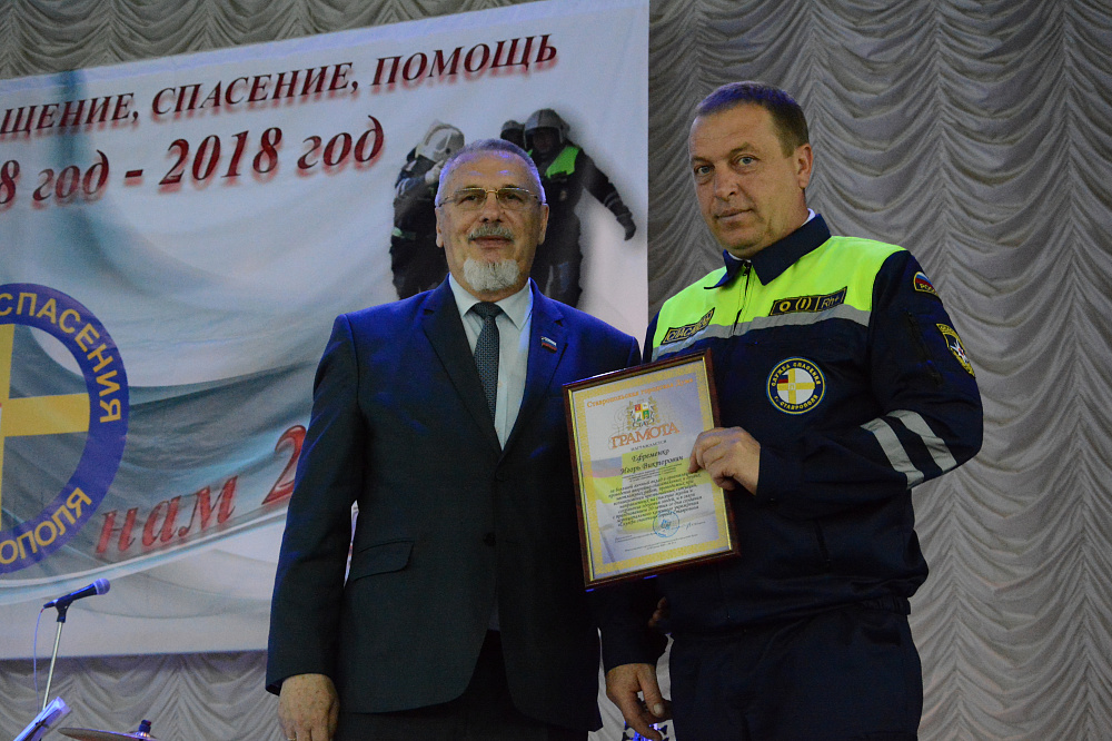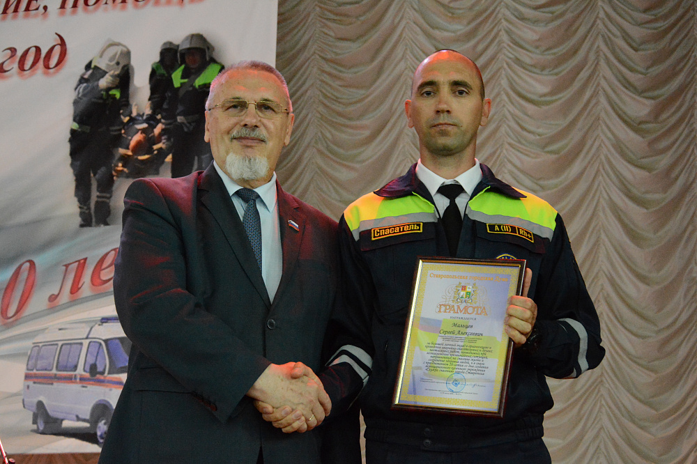 Георгий Колягин в приветственном слове сказал, что «Служба спасения» во многом напоминает скорую помощь, отличие же в том, что спасая чужие жизни, сотрудники службы зачастую рискуют своими собственными. Прозвучало, что на счету городских спасателей не только тысячи спасённых жизней, но и радость, подаренная людям, ведь в «Службу спасения» обращаются с разными проблемами. Спикер поблагодарил спасателей за высокий профессионализм и вручил грамоты Ставропольской городской Думы отличившимся специалистам.